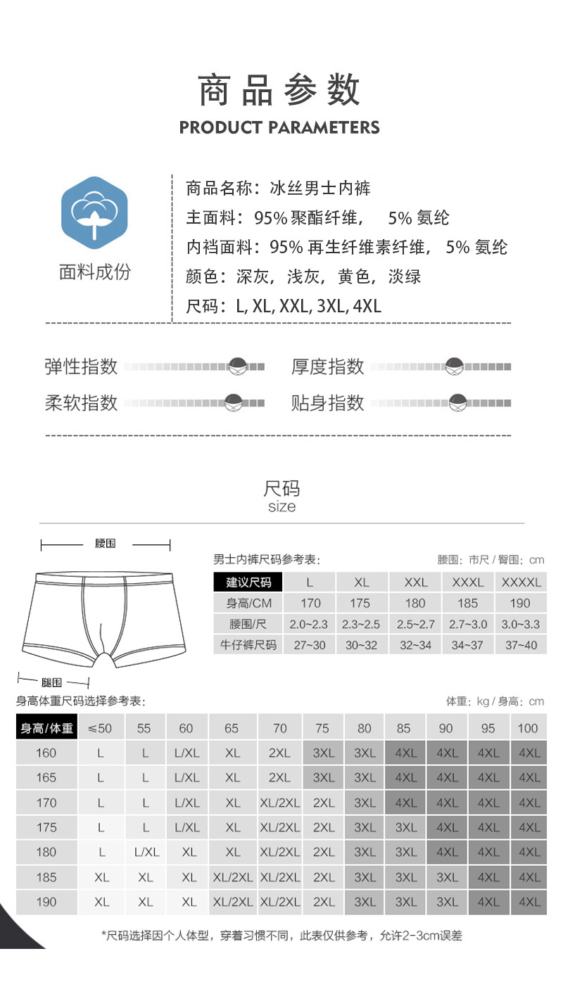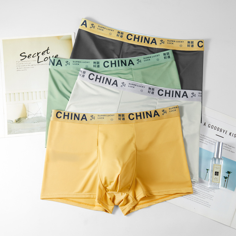 男士冰丝内裤无痕四角裤 夏季超薄透气男生平角裤 大码中腰内裤男