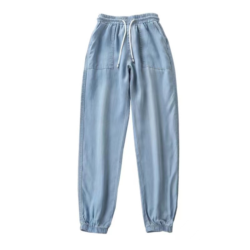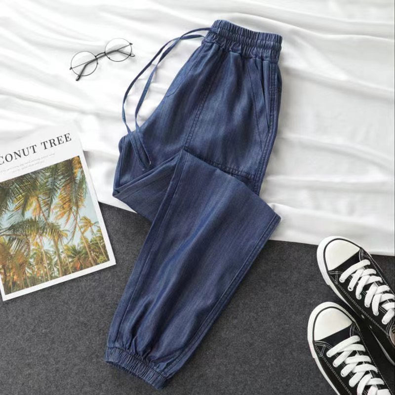 天丝牛仔裤女薄款2023新款女裤宽松夏季高腰大码休闲束脚哈伦裤女