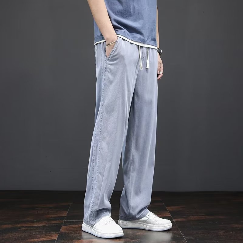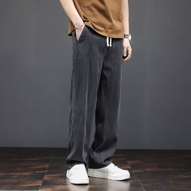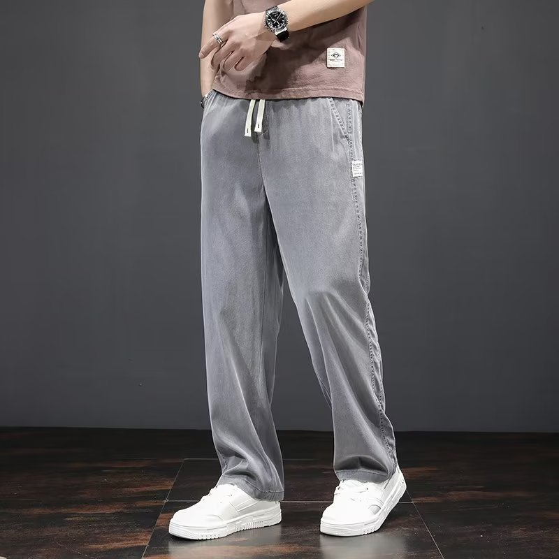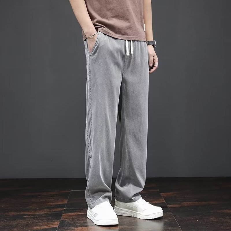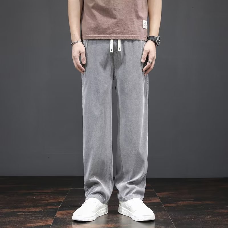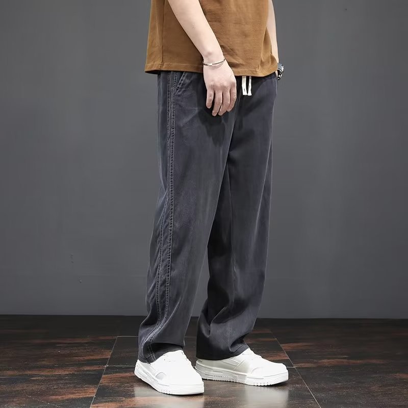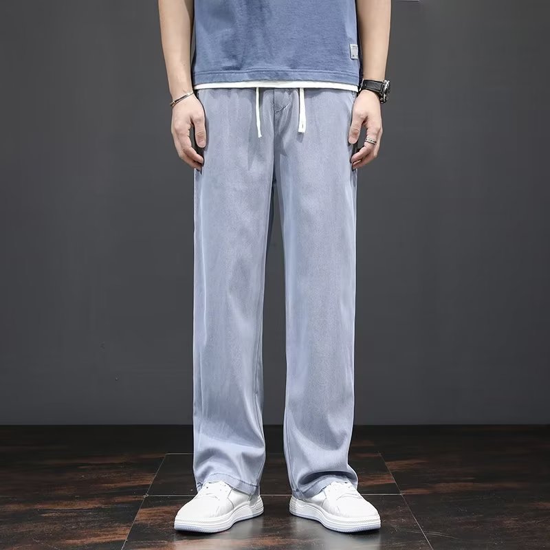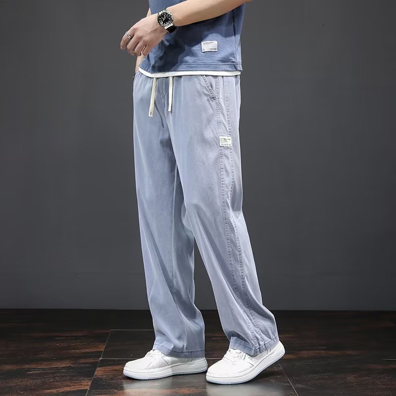 夏季薄款天丝牛仔裤男士宽松直筒休闲阔腿裤男超薄冰丝潮牌长裤男