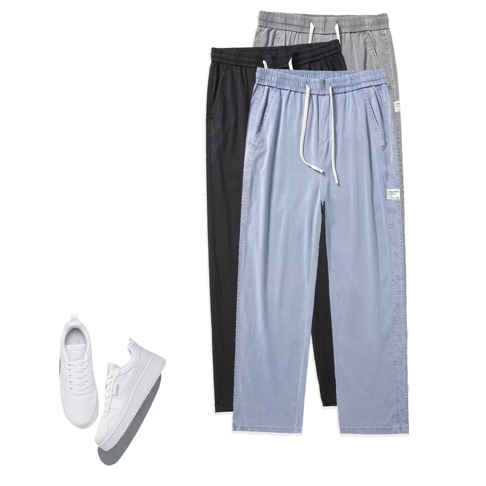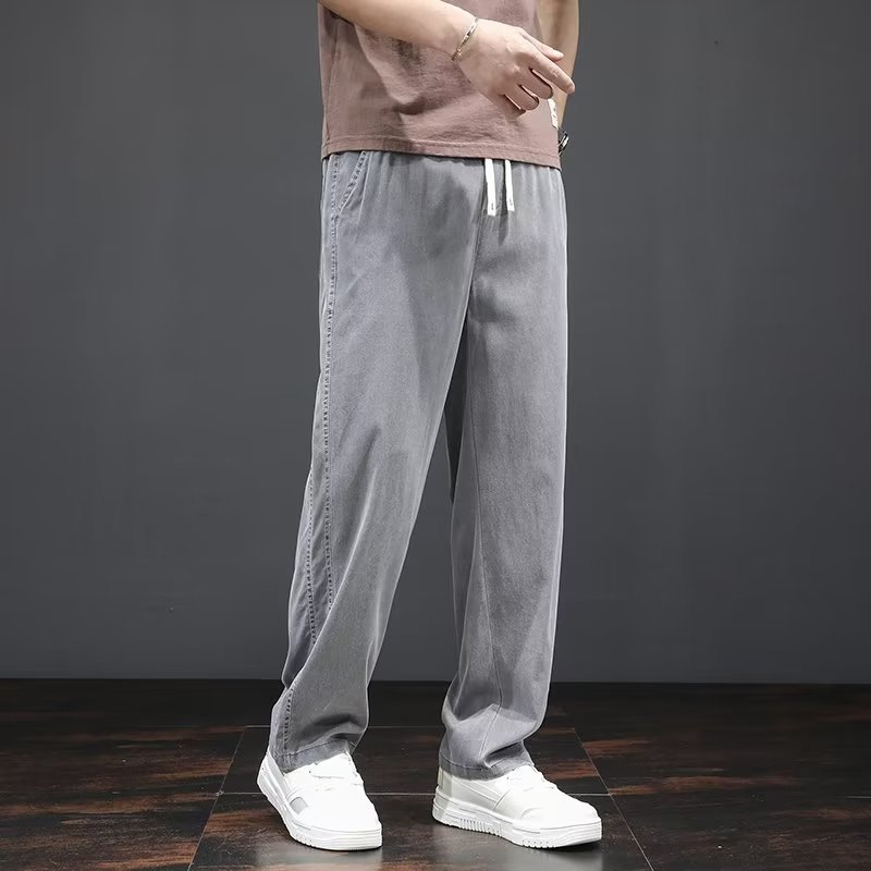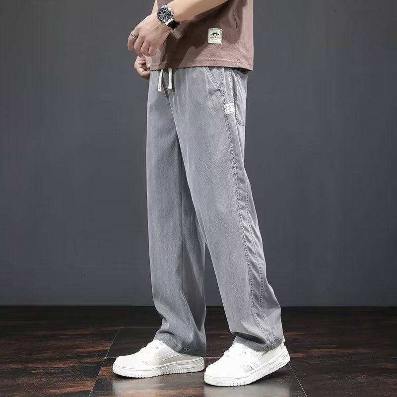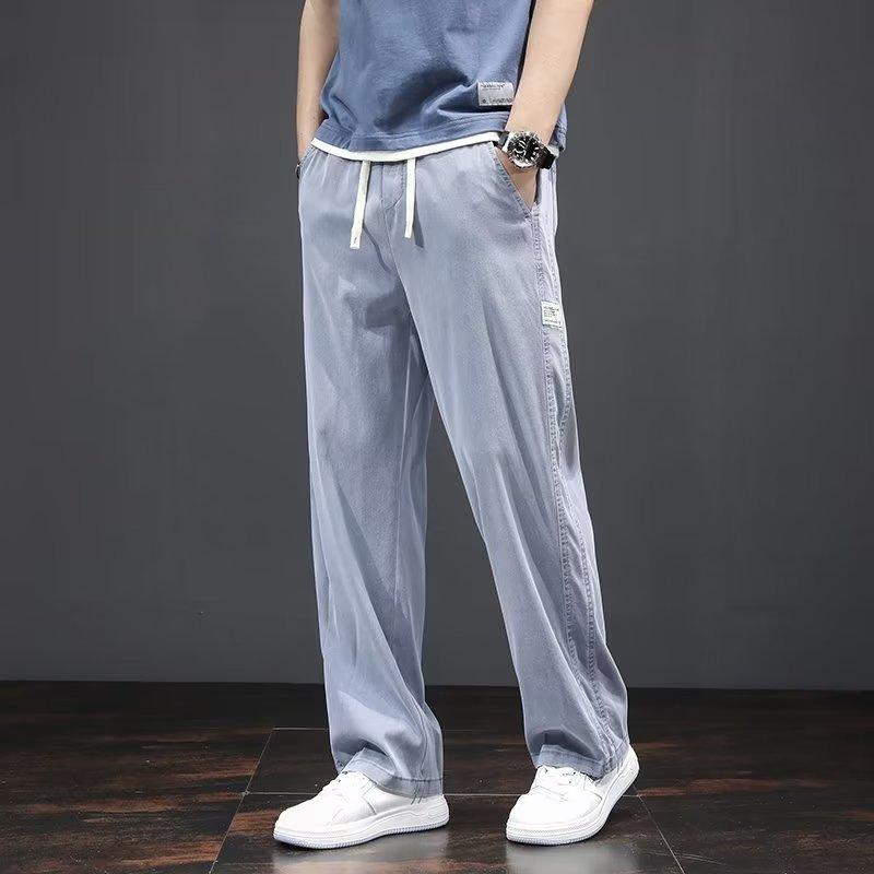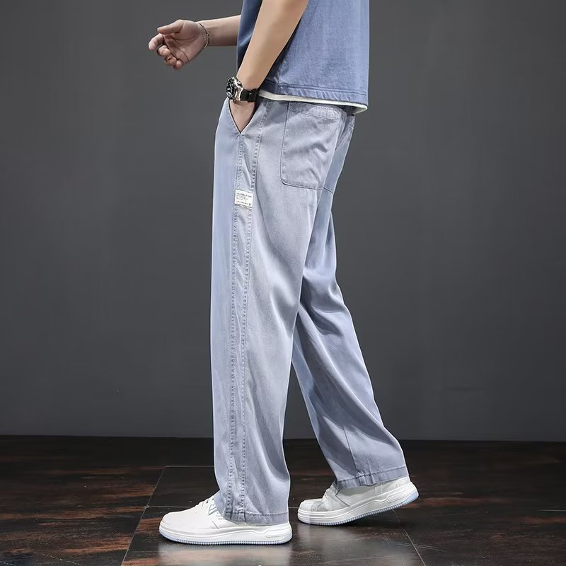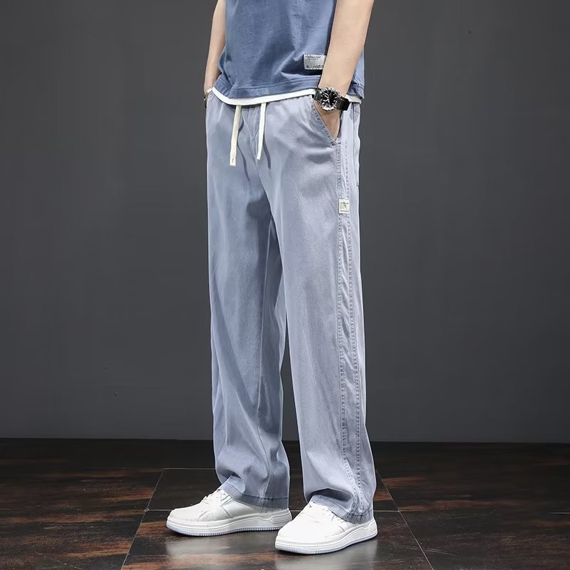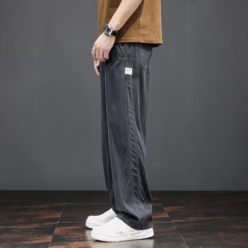 夏季薄款天丝牛仔裤男士宽松直筒休闲阔腿裤男超薄冰丝潮牌长裤男