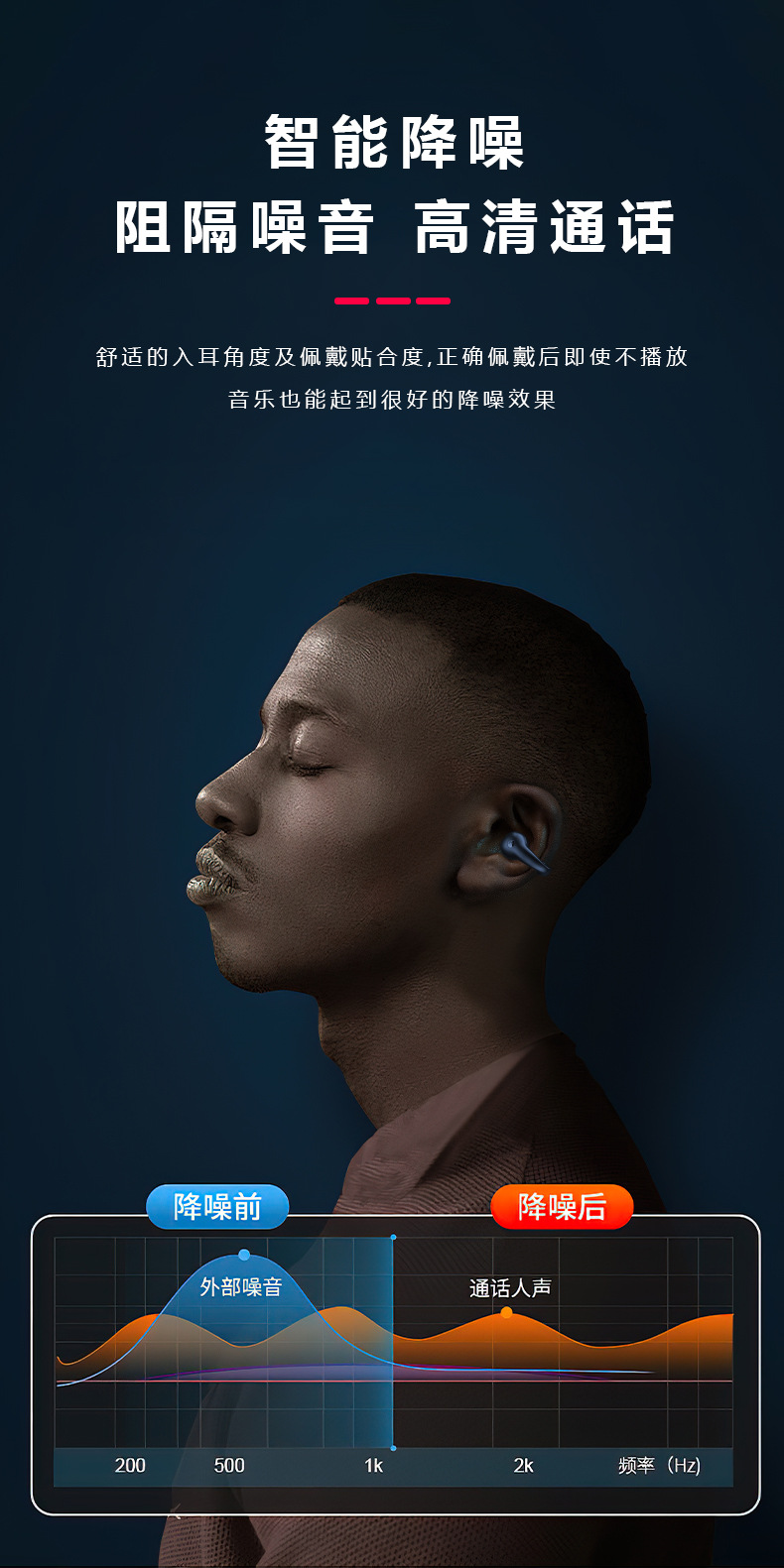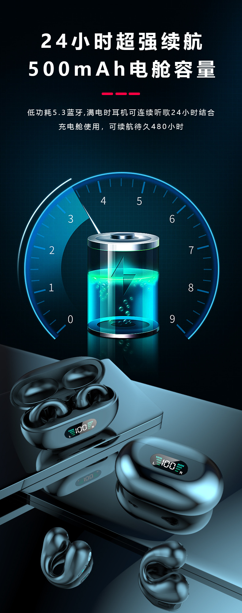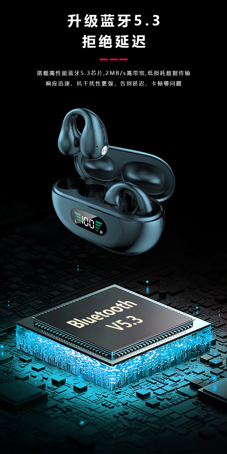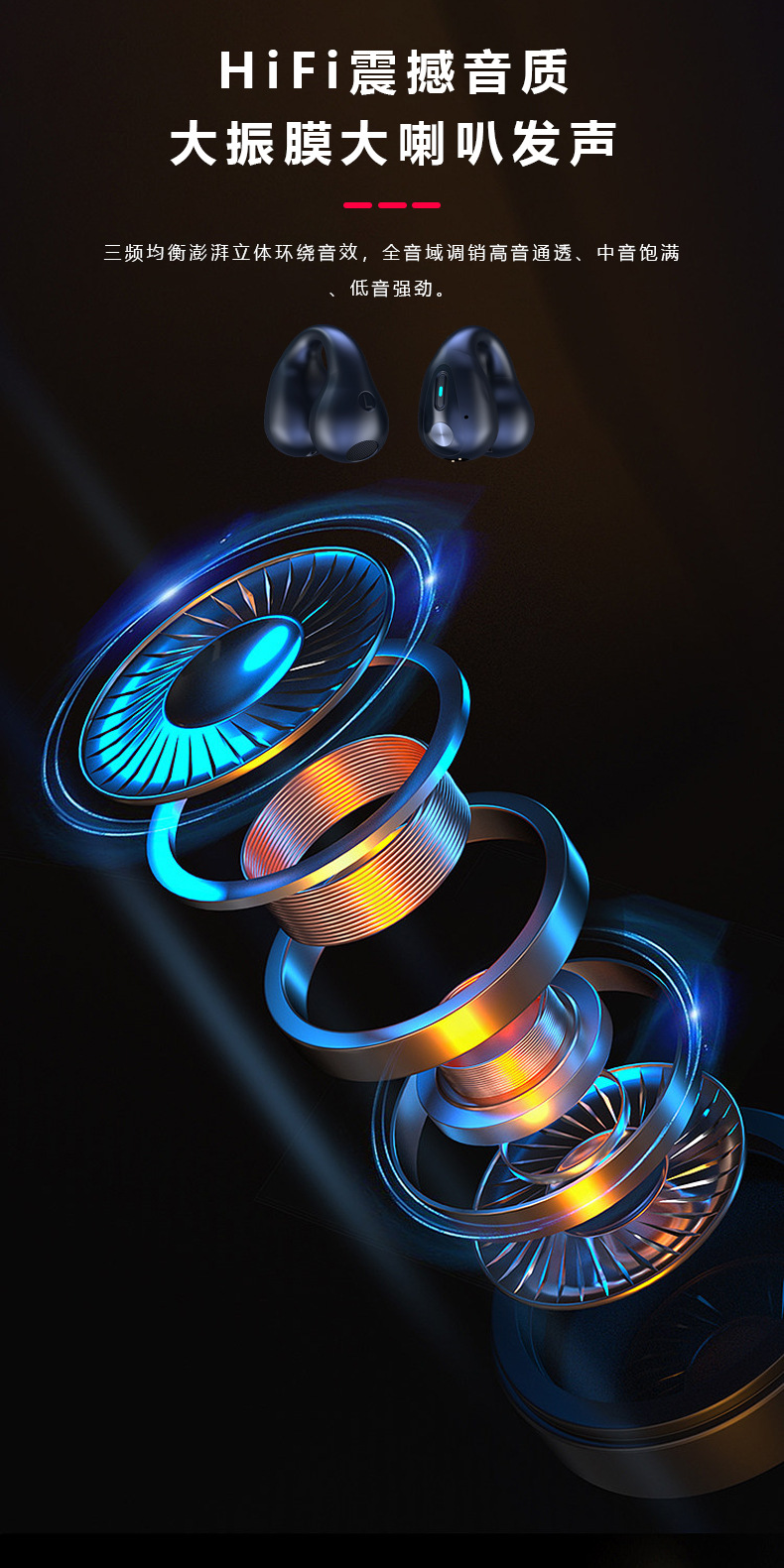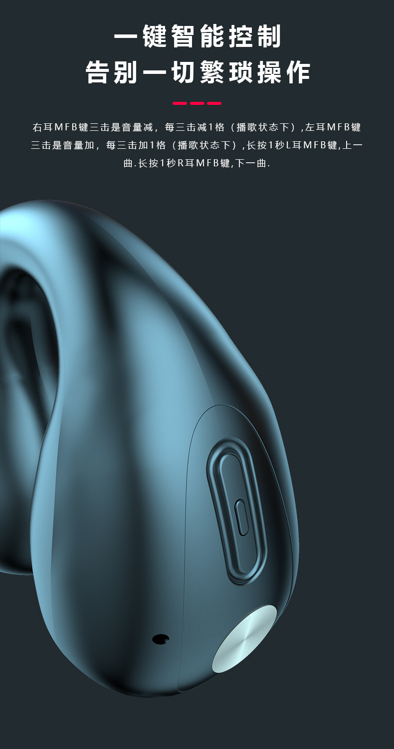 亚马逊新款Abmie 同款骨传导无线蓝牙耳机运动传感耳夹式不入耳