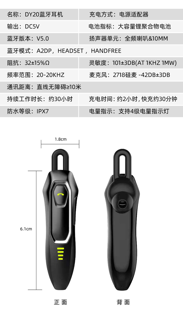 D20迷你入耳式单耳无线蓝牙耳机商务车载运动促销礼品手机耳机