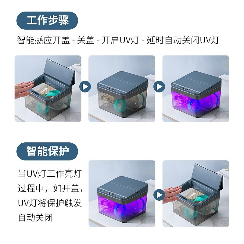 智能感应消毒盒手机UVC消毒器电动桌面收纳盒首饰护肤纸巾零食盒