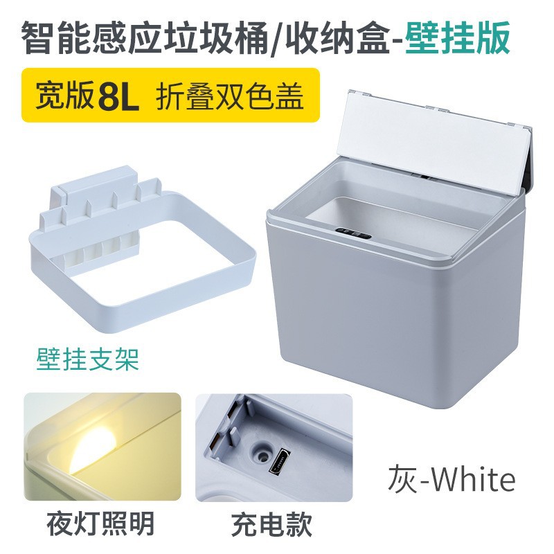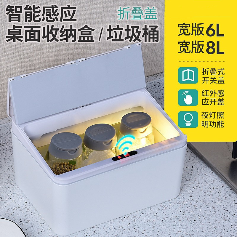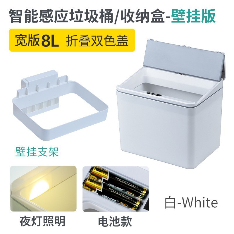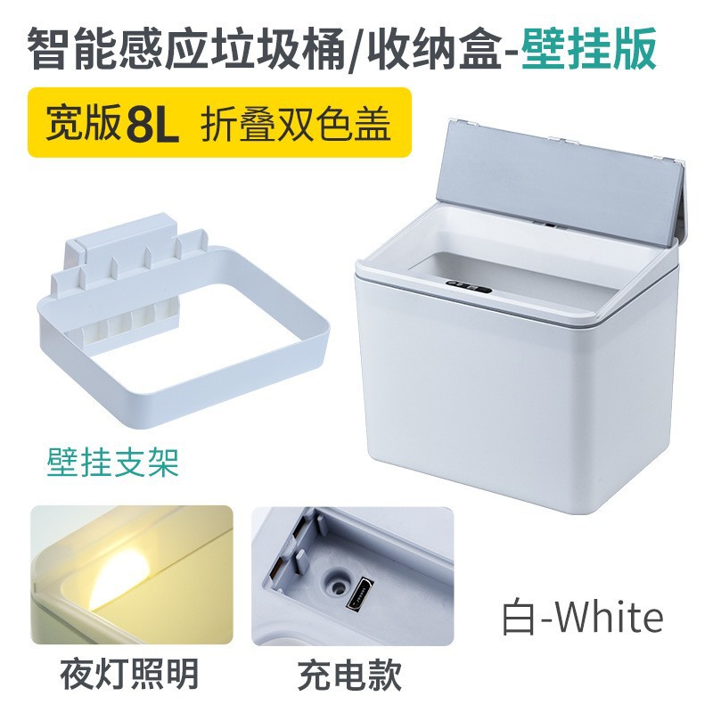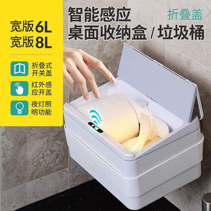 智能感应电动桌面垃圾桶挂壁厨挂墙收纳盒桌上办公室纸巾盒口罩盒