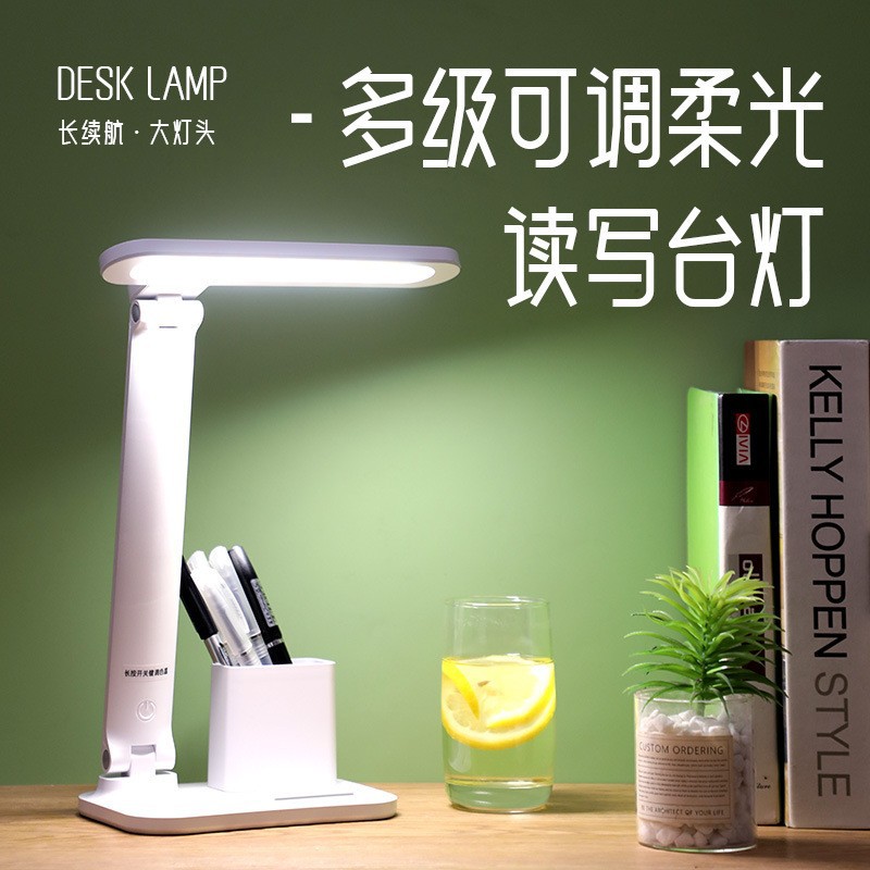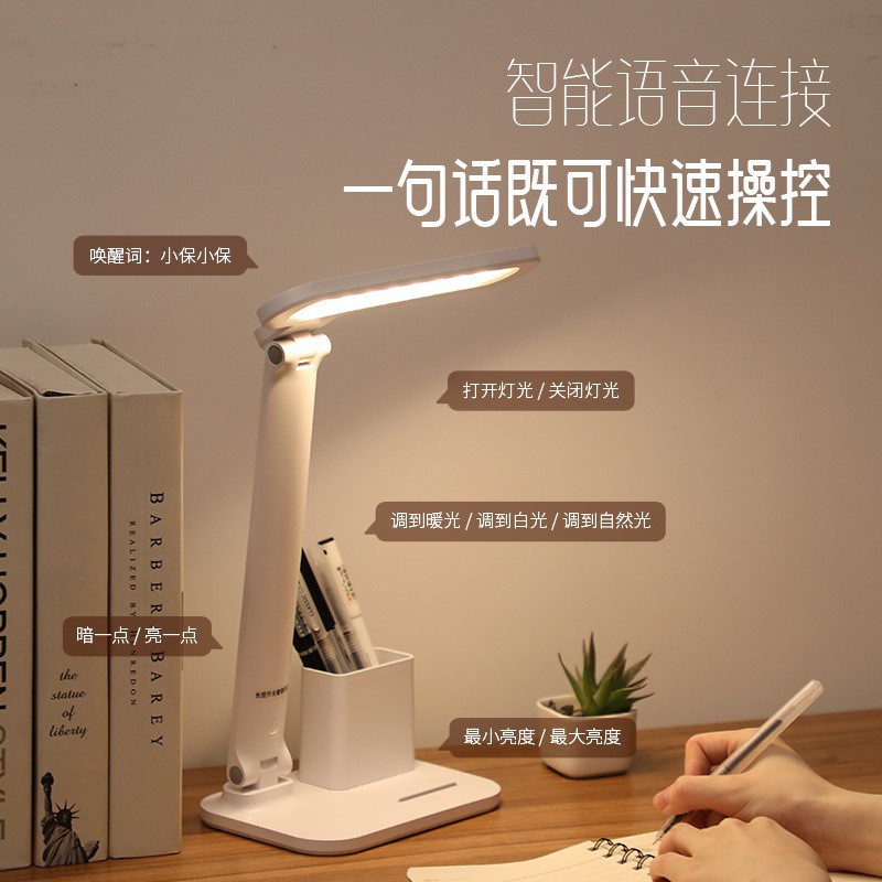智能语音折叠便携台灯USB充插两用笔筒手机支架多功能LED读写台灯