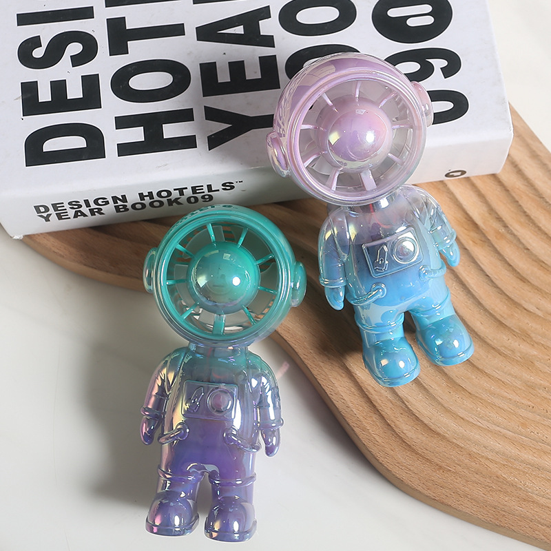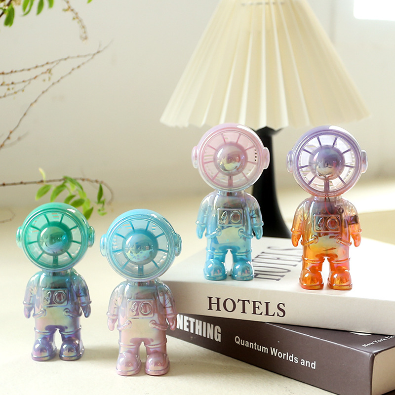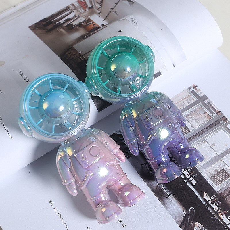 创意小型强风手持便携炫彩宇航员小风扇多档位充电挂脖式钥匙挂件