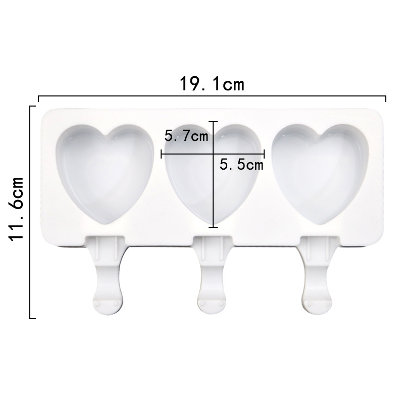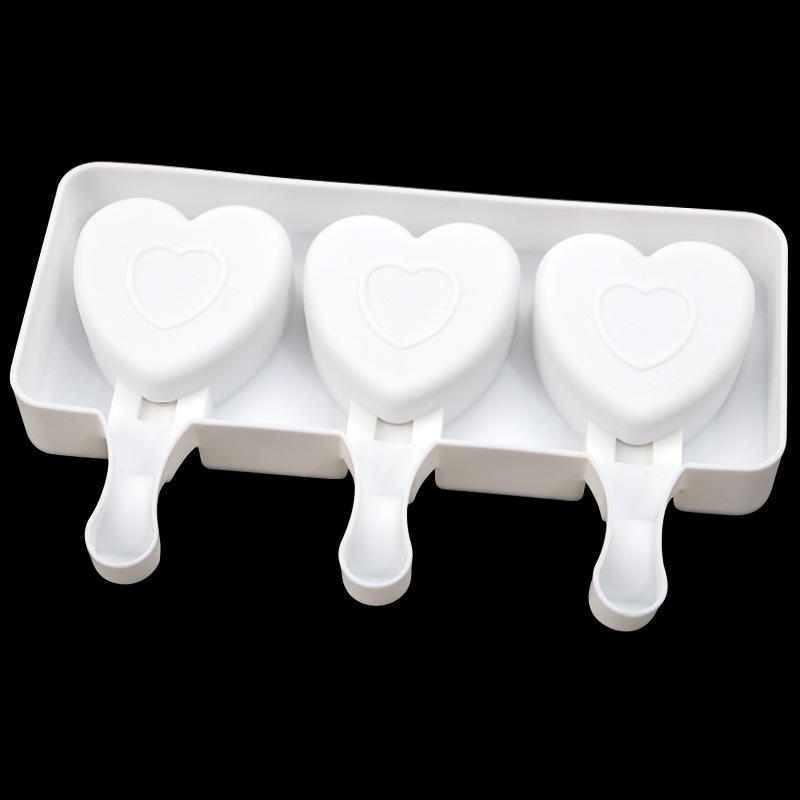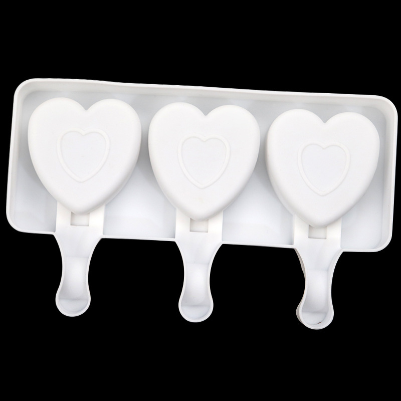 3连爱心 硅胶雪糕模 DIY创意冰淇淋模 不配棒 夏季 棒冰模