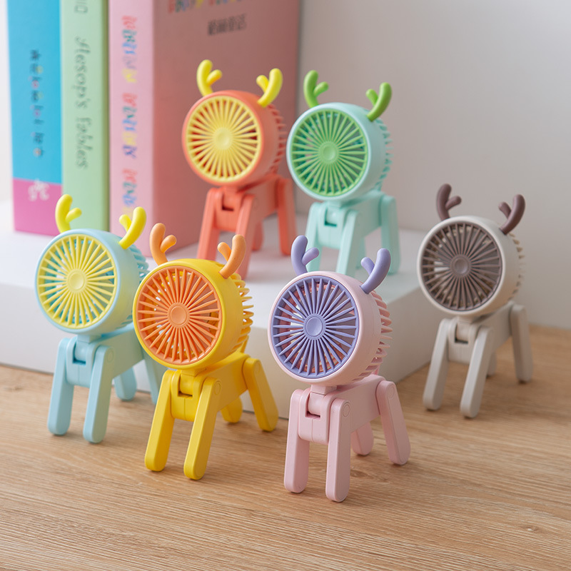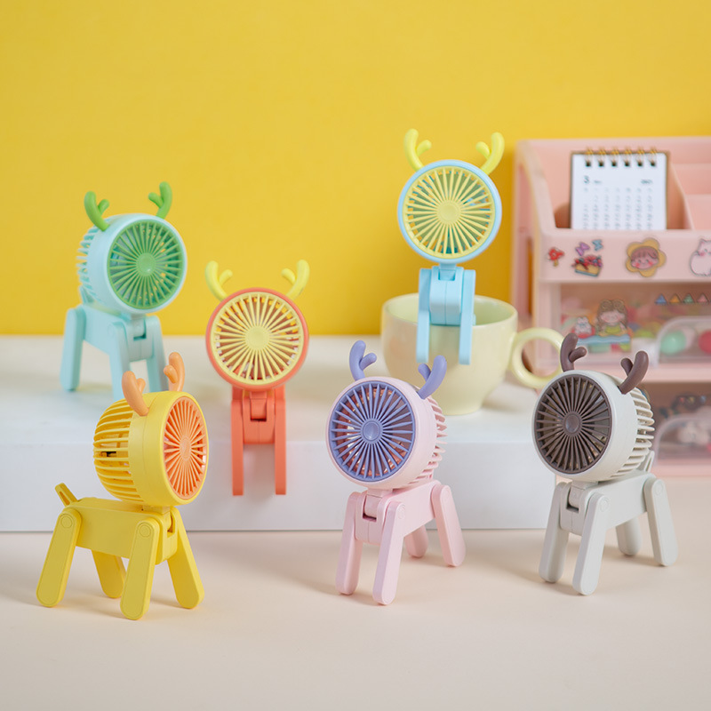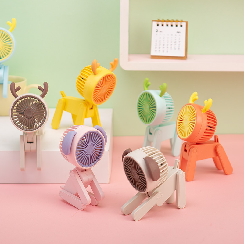 卡通可爱小风扇迷你便携式USB可充电款学生宿舍桌面摆件奶狗电扇