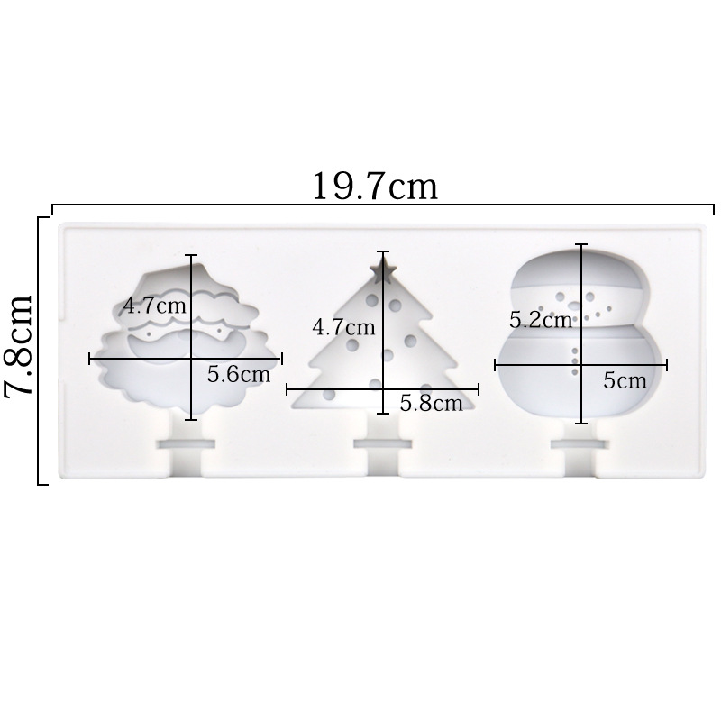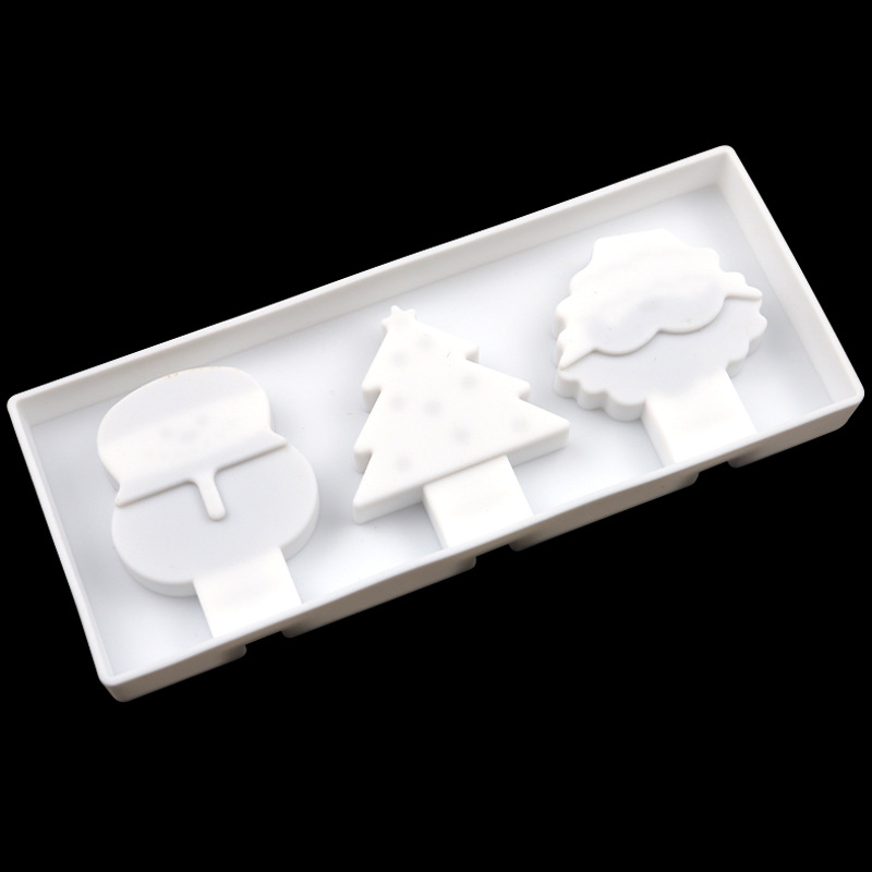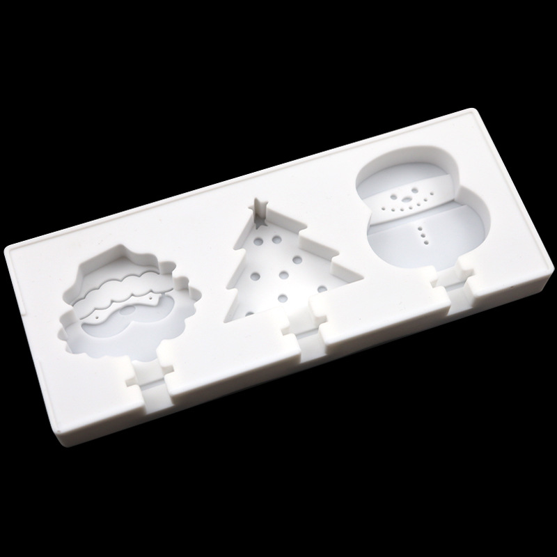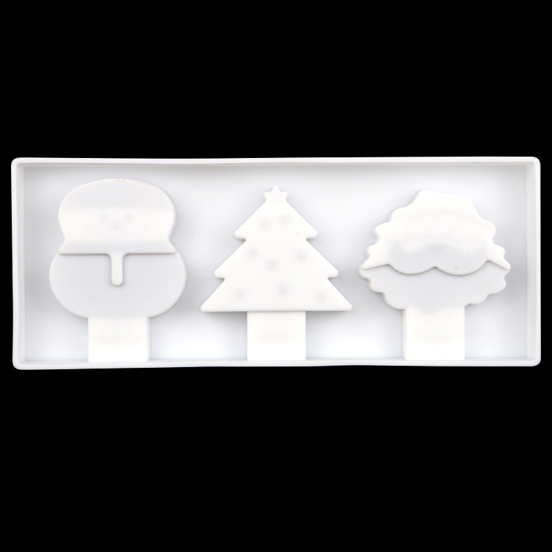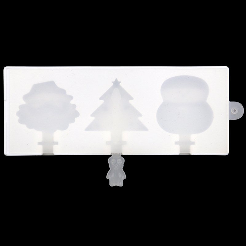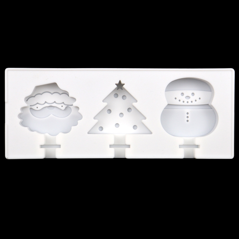 圣诞系列 3连硅胶雪糕模卡通棒冰模具 硅胶冰淇淋模 带盖不配棒