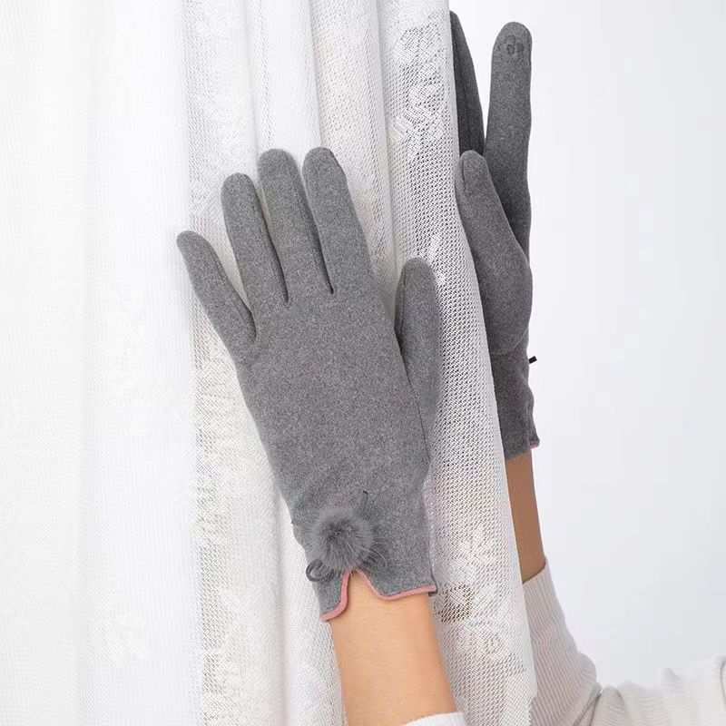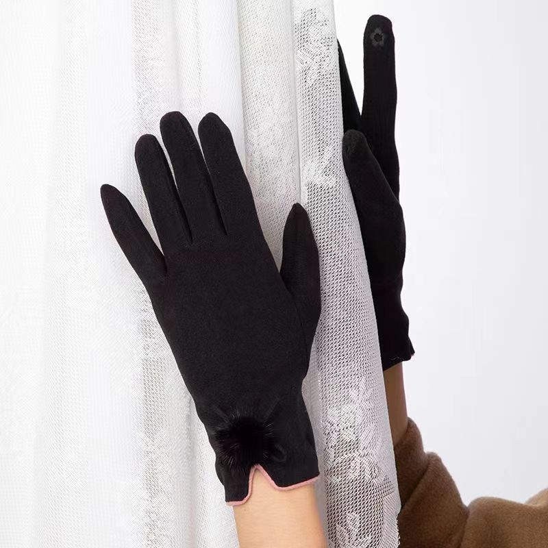 厂家跨境批发女士冬季德绒兔绒貂毛球加绒保暖户外骑行触屏手套
