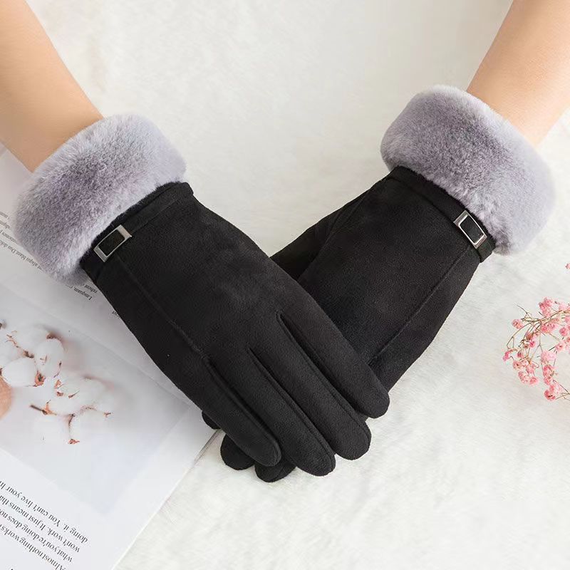 跨境厂家批发冬季麂皮绒女士保暖加厚防寒骑行户外触屏毛口手套