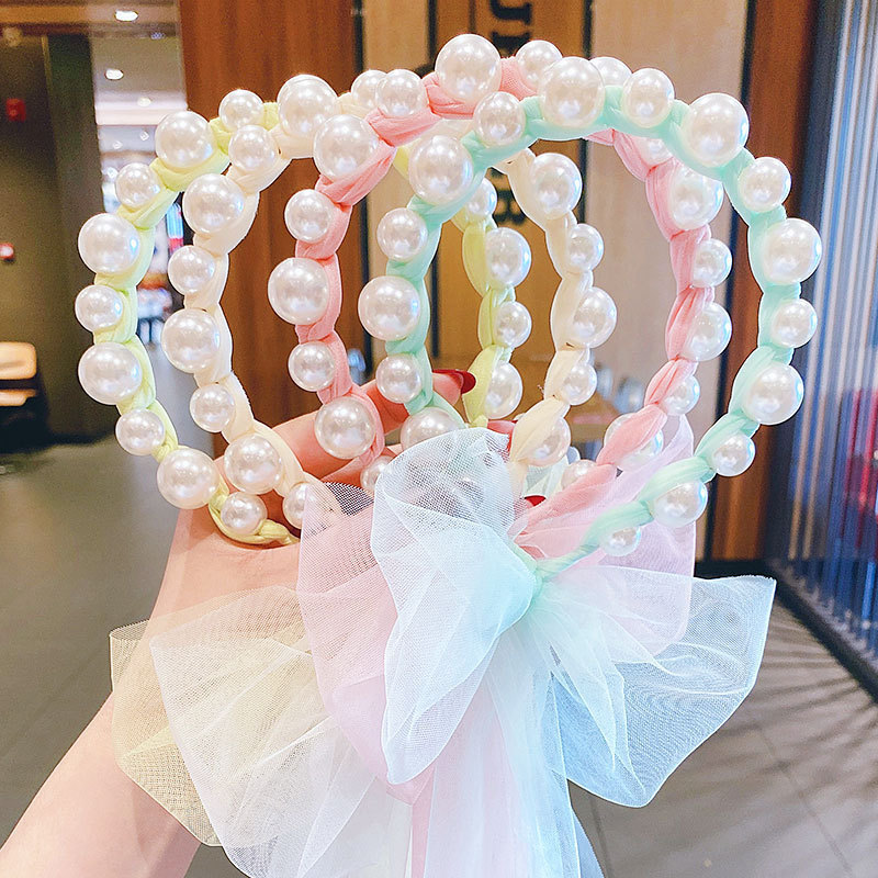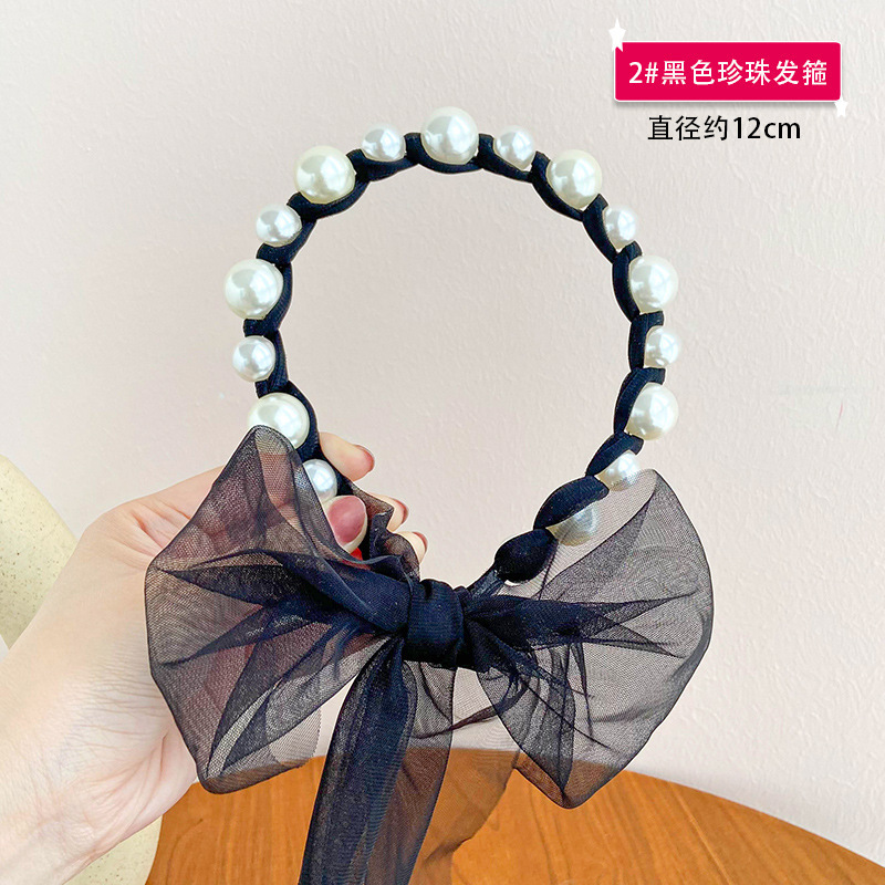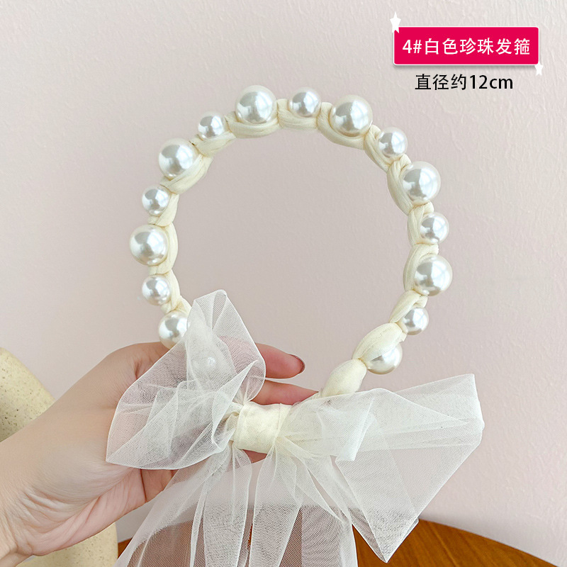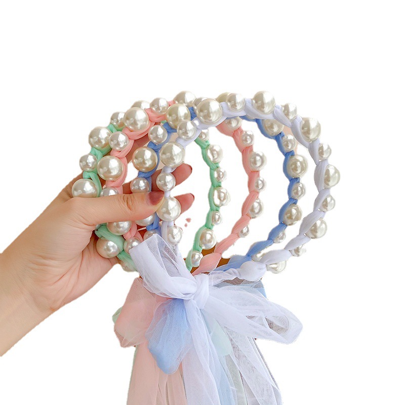 儿童珍珠飘带发箍韩国头公主网纱马尾头箍女童蝴蝶结绑发可爱头饰