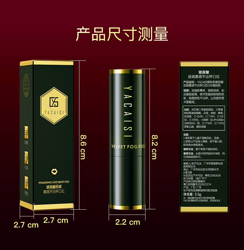 雅彩思玻尿酸泥雾口红 滋润不沾杯不掉色哑光雾面口红网红彩妆