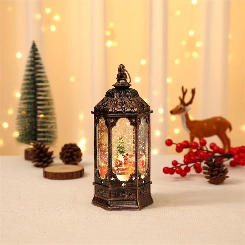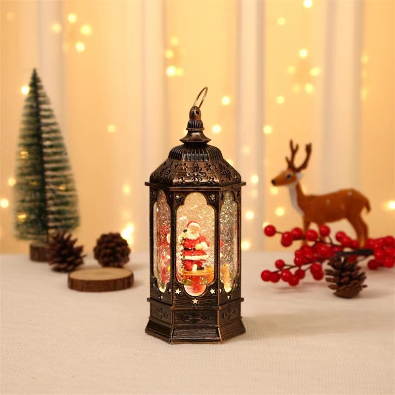 新款创意圣诞节儿童礼物带音乐会旋转树脂老人注水油灯摆件装饰品