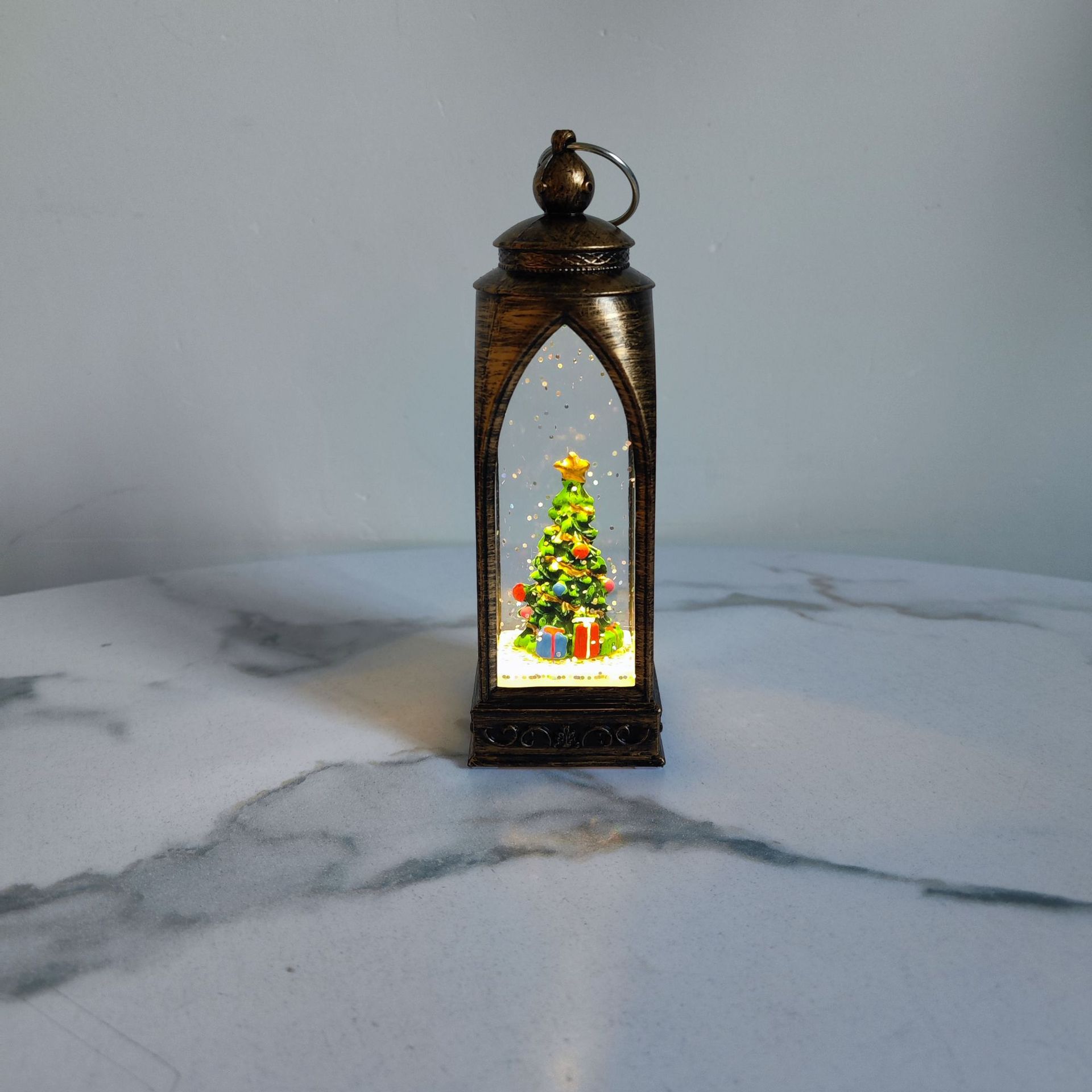 古铜圣诞老人内景小风灯 圣诞LED注水发光小夜灯摆件礼物