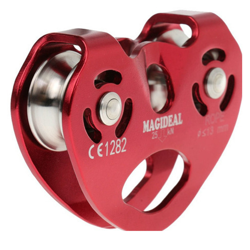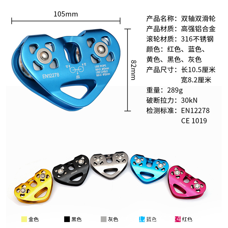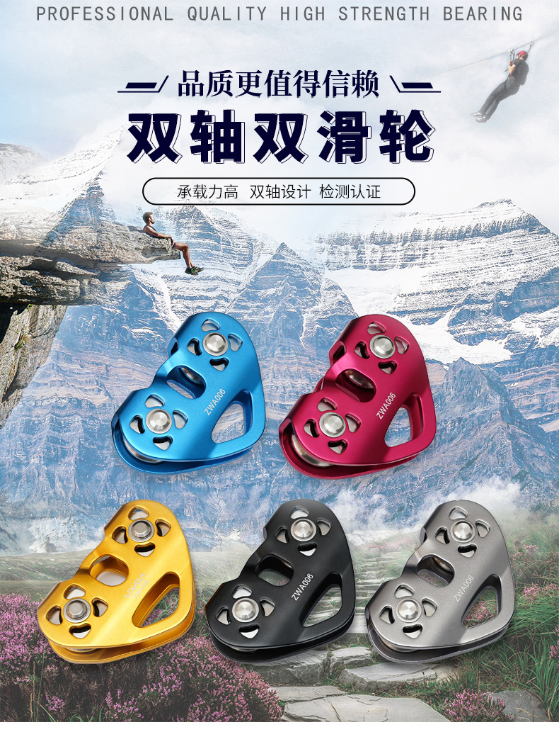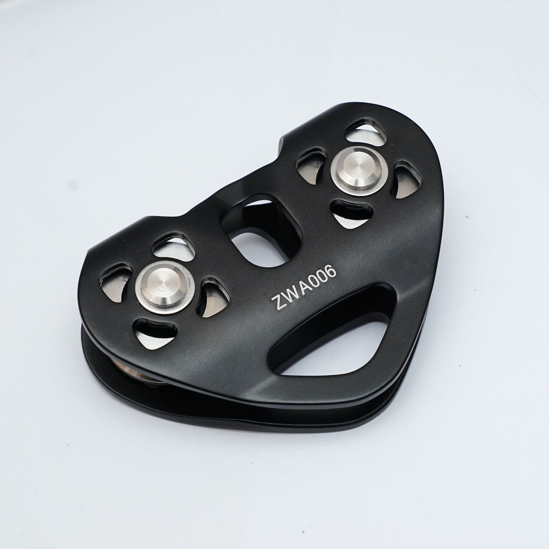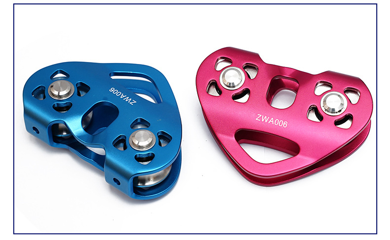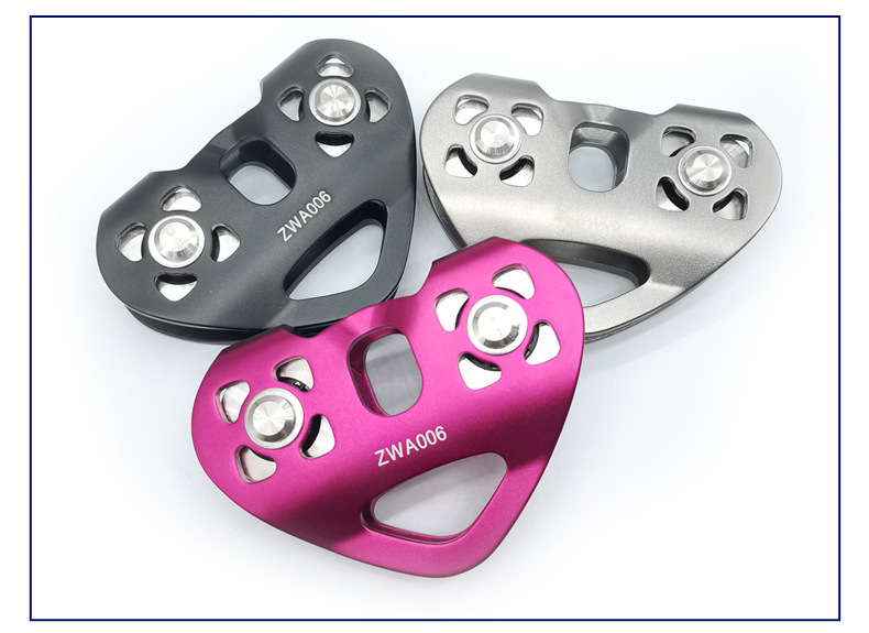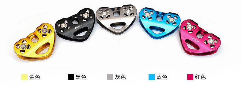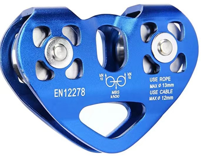 跨境心型双滑轮户外登山攀岩滑轮组高空运输设备心型吊装救援滑轮
