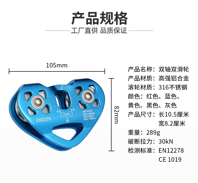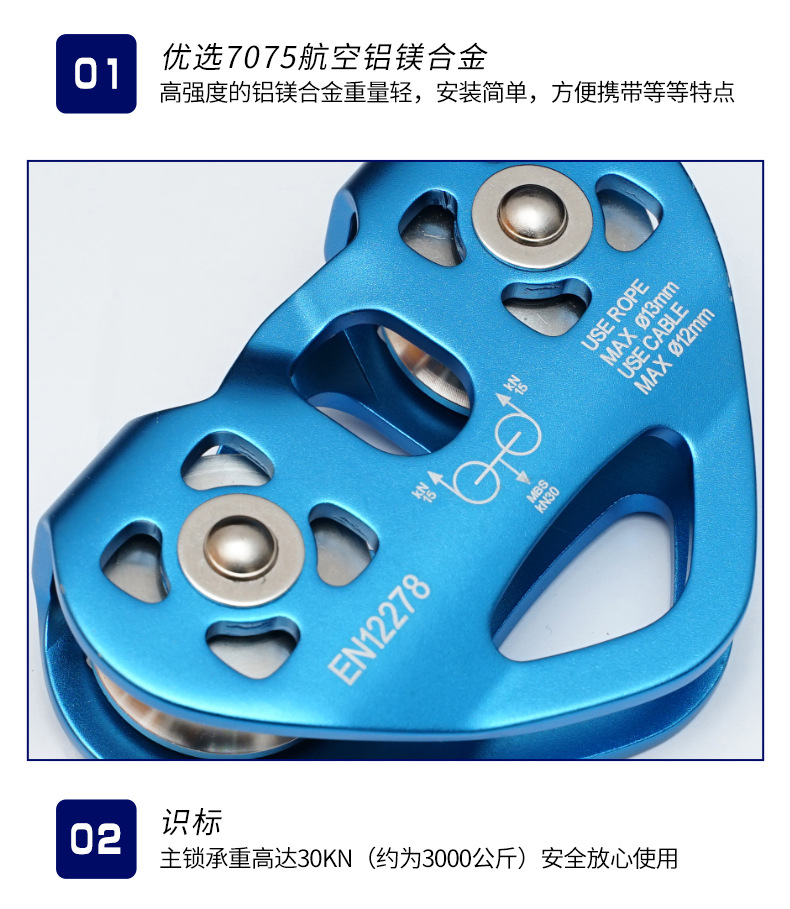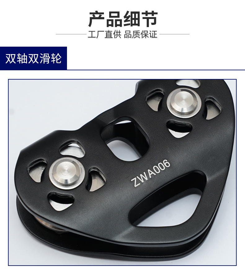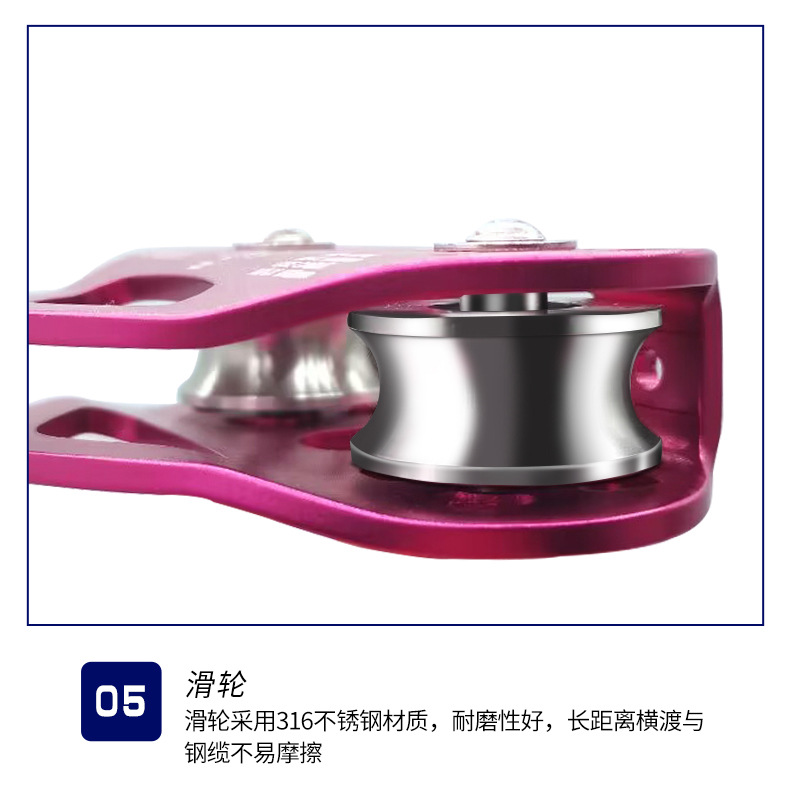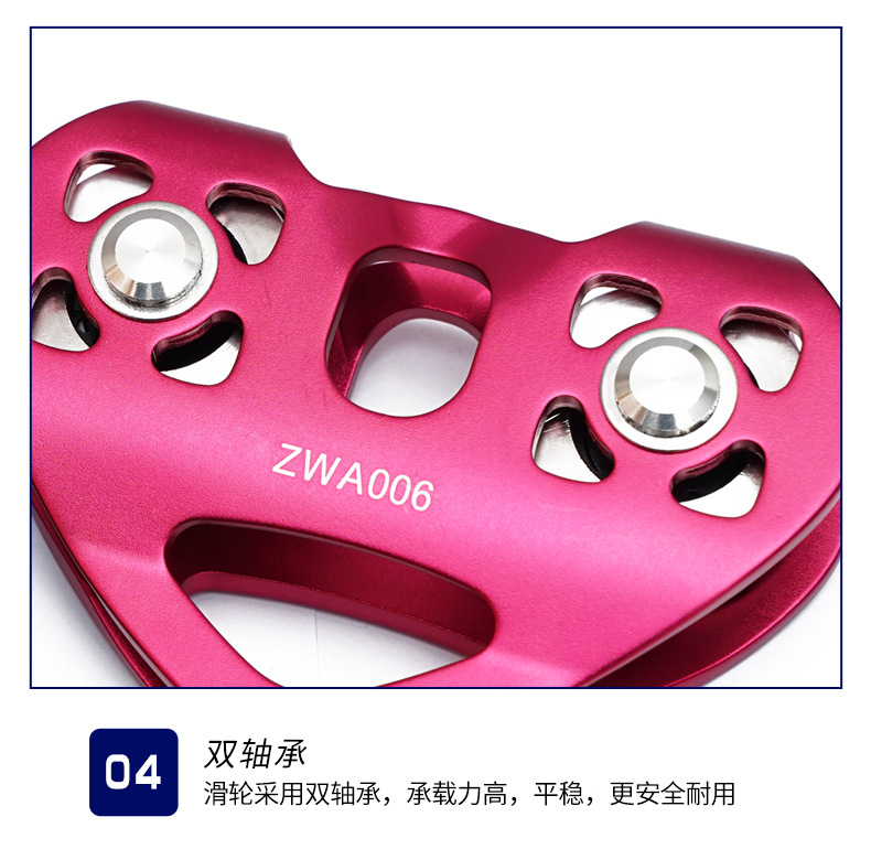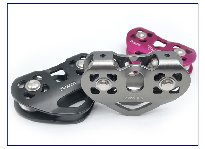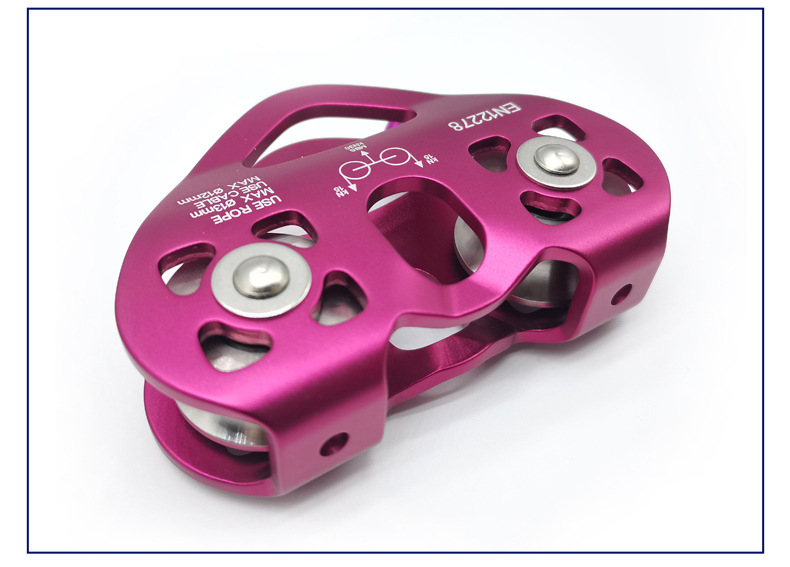 跨境心型双滑轮户外登山攀岩滑轮组高空运输设备心型吊装救援滑轮
