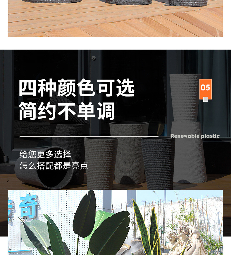 圆形高筒塑料加厚树脂特大号花盆绿植天堂鸟龟背竹透气花盆批发
