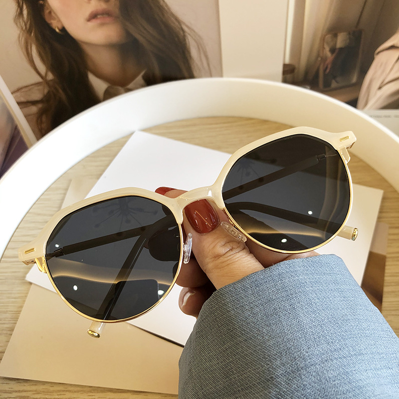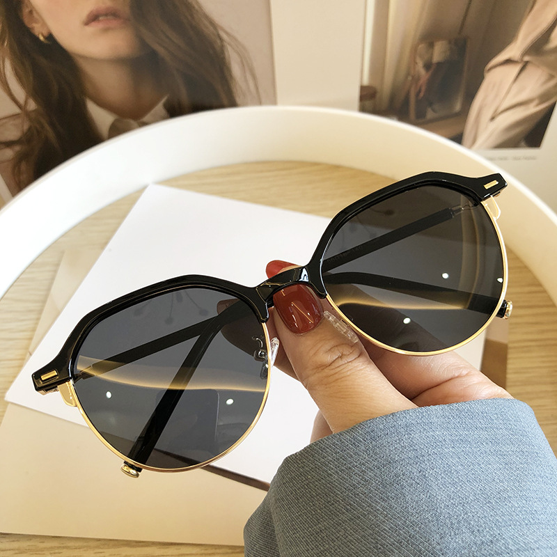 新款复古半框偏光镜潮小脸ins风街拍凹造型墨镜防紫外男女
