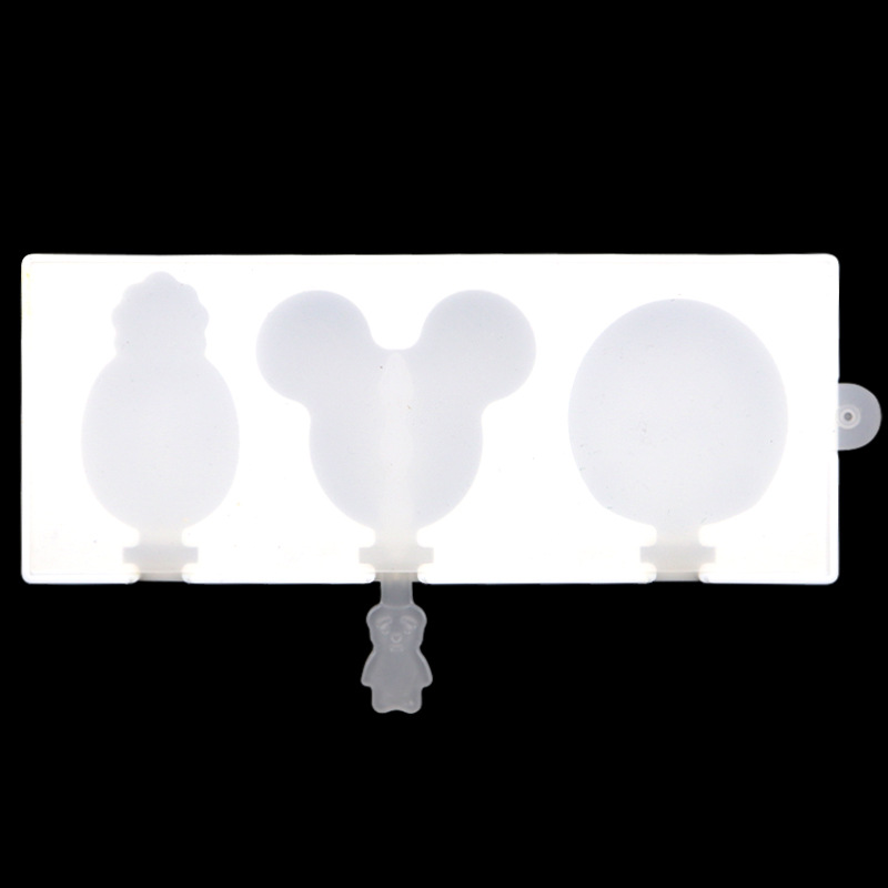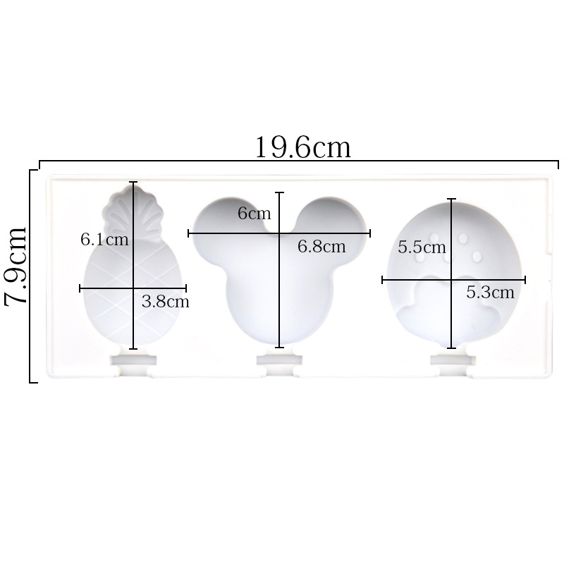 3连米鼠头草莓 自制硅胶雪糕模具 创意冰棒模带盖不配棒