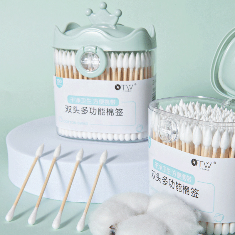 美妆工具OTW双头多功能棉签200支装化妆卸妆挖耳朵一次性清洁棉棒