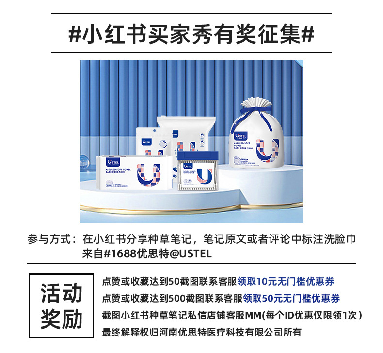 USTEL盒装双头棉签一次性化妆棉掏耳棉花棒卫生棉圆头螺