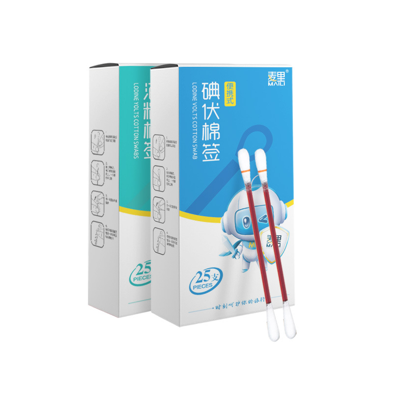 批发婴儿折断式碘伏棉棒一次性消毒杀菌棉签便携盒装50支家用厂家