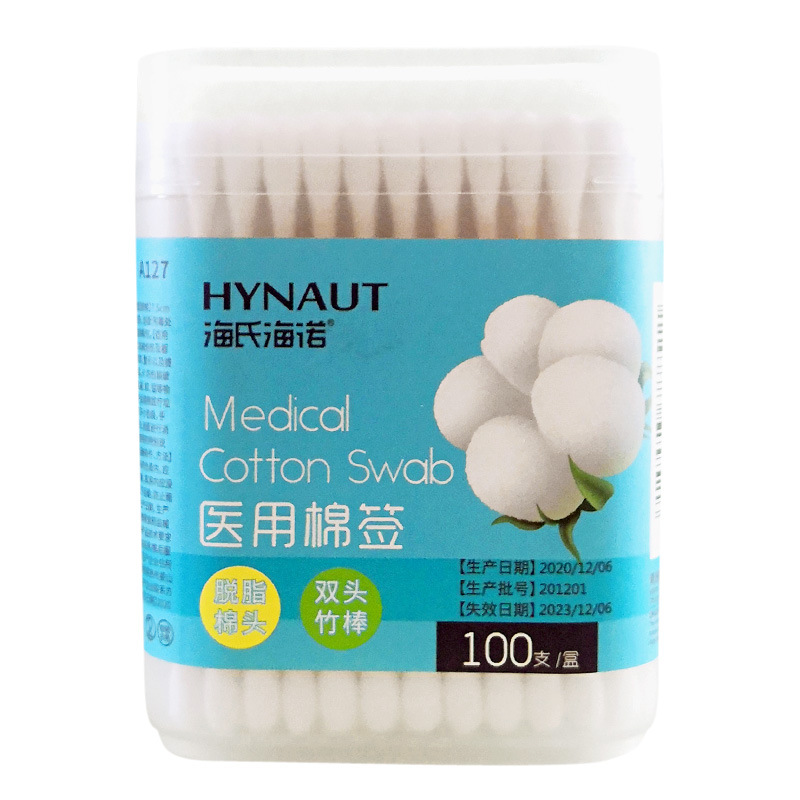 海氏海诺 100支盒装一次性双头脱脂棉棒圆头棉签化妆旅行便携棉棒