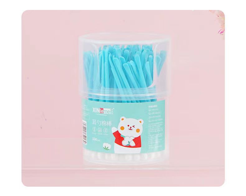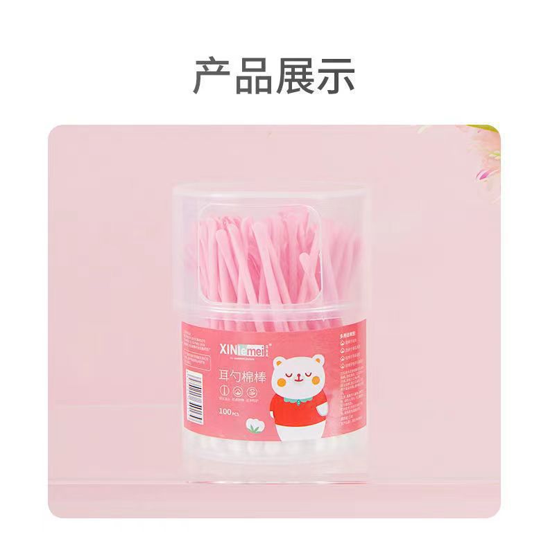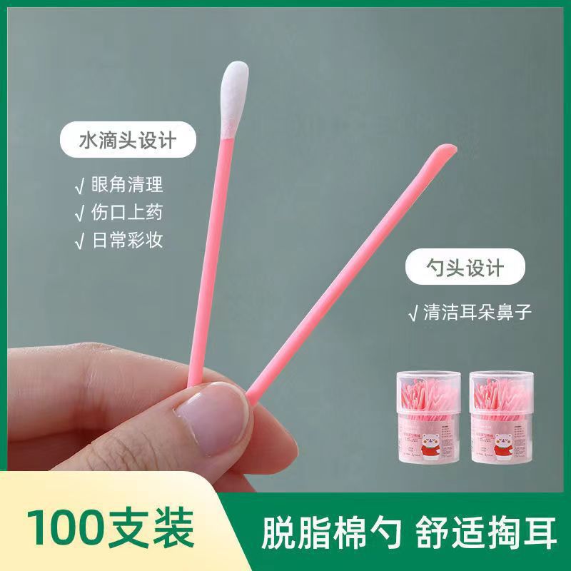 爆款100支棉签耳勺二合一陶耳朵清洁挖耳勺棉棒消毒棉签棒可代发