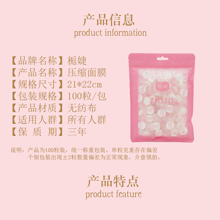 栀婕一次性压缩面膜 100粒糖果压缩纸膜 无纺布面膜扣膜布批发