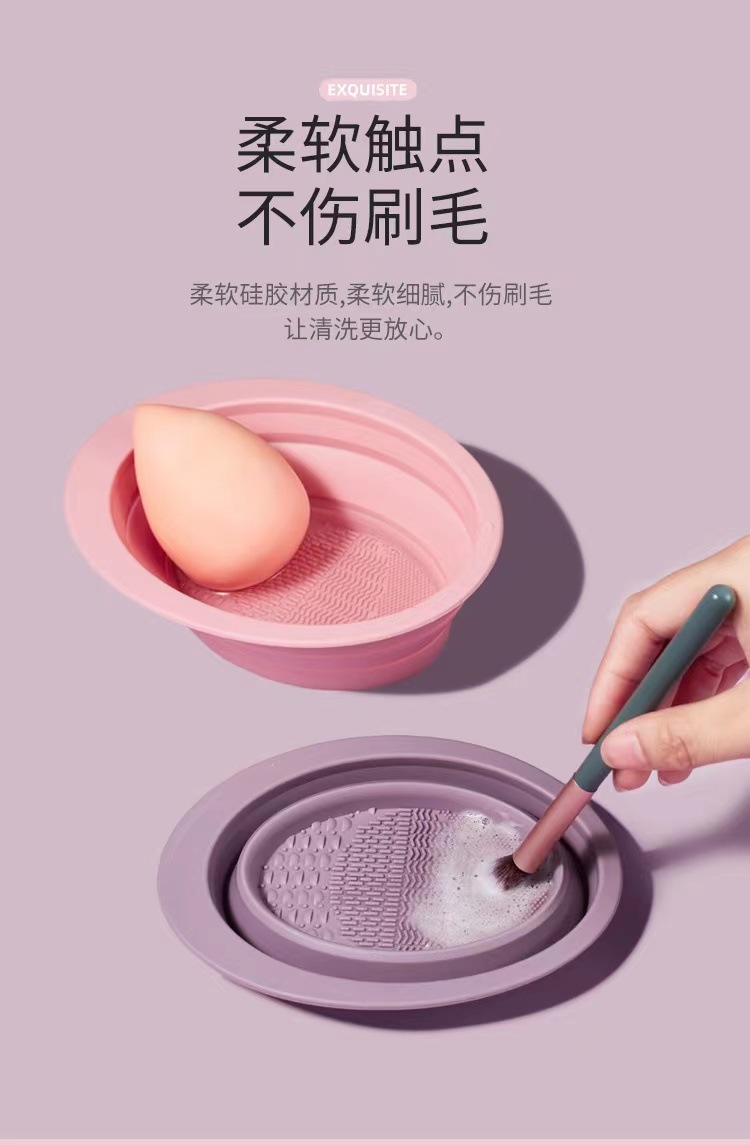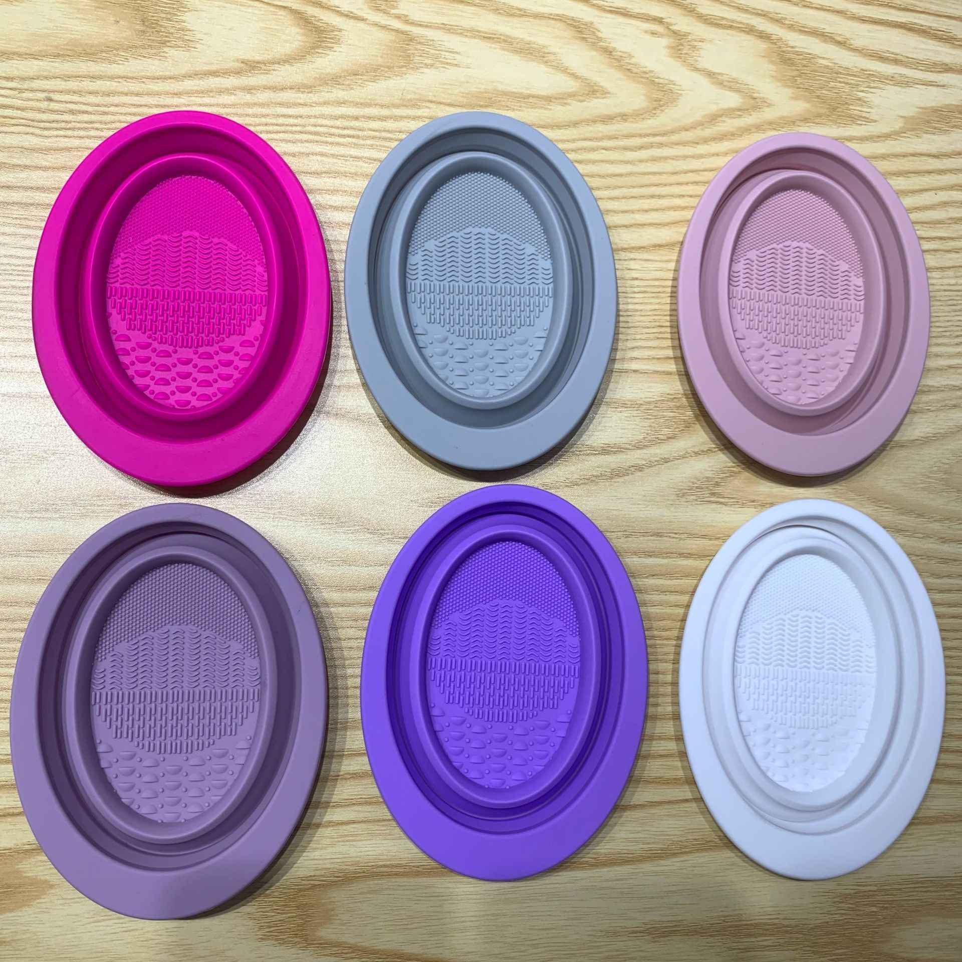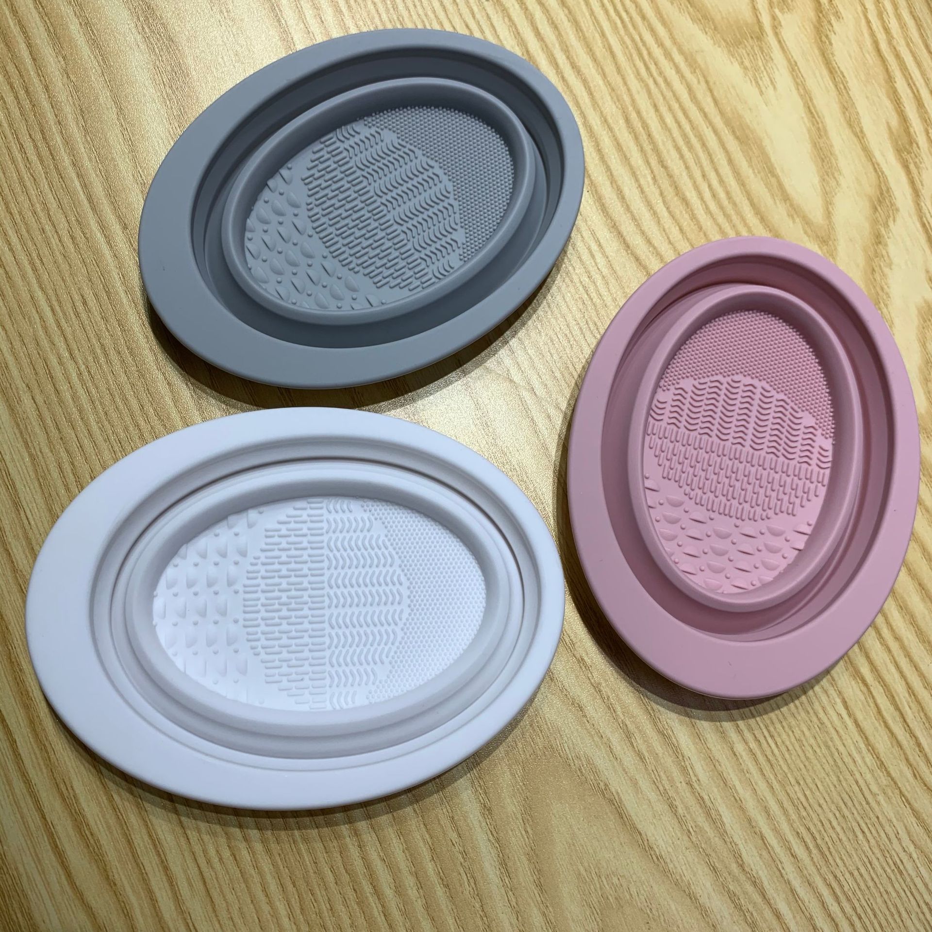 化妆刷洗刷垫 硅胶折叠洗刷碗 椭圆调膜碗搅拌清洁面膜碗现货