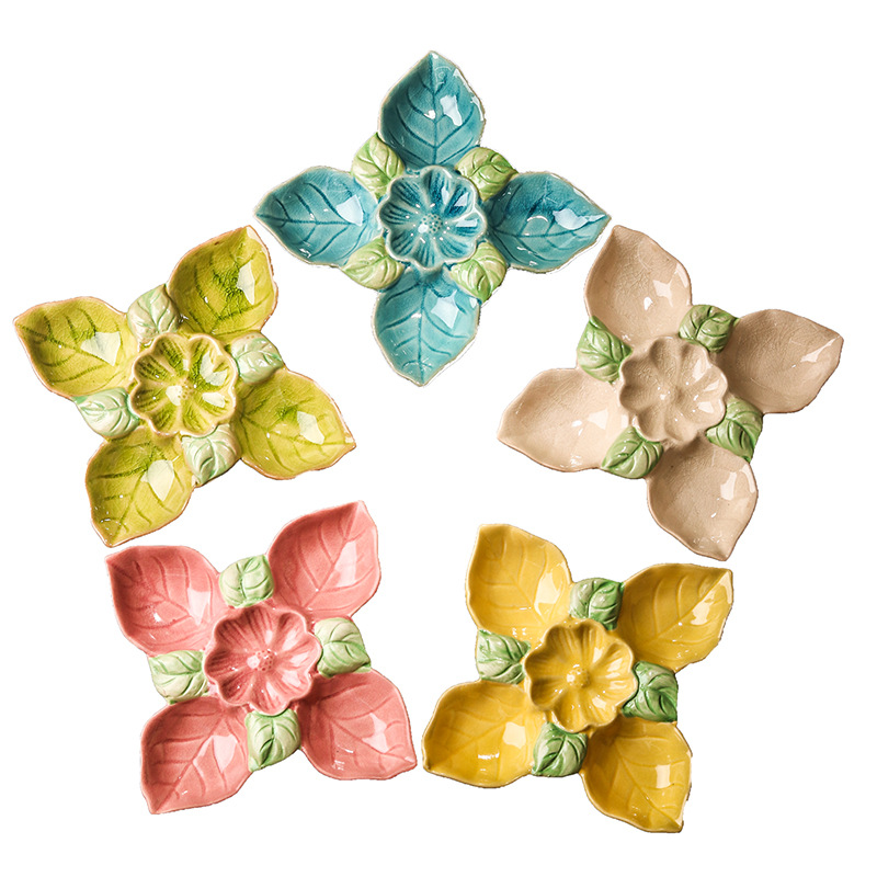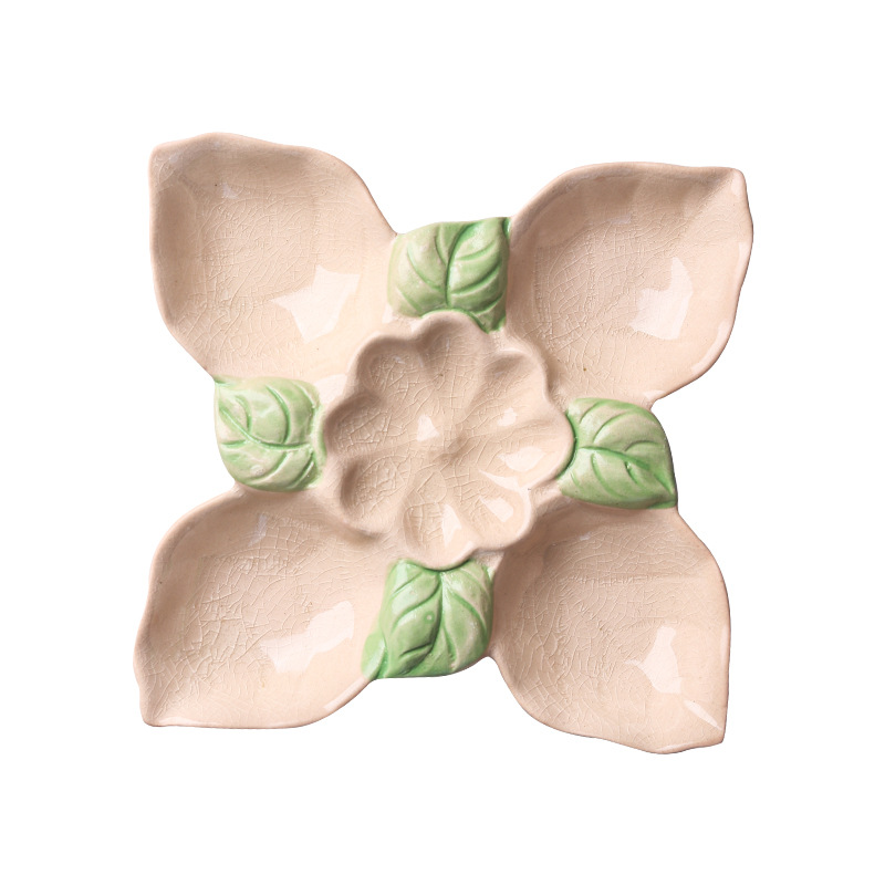 美容院手绘冰裂短叶四叶碗陶瓷精油碗精油调配碗精油托盘小碟器皿