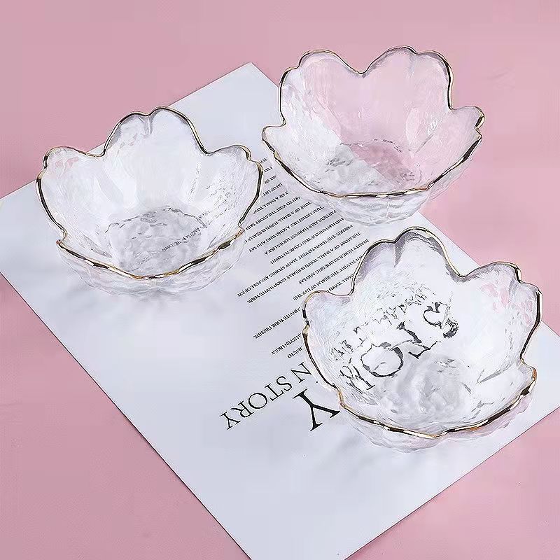 ins日式透明樱花碟玻璃碟精油碟蘸料碟玻璃碟酱料调味碟批发小碗