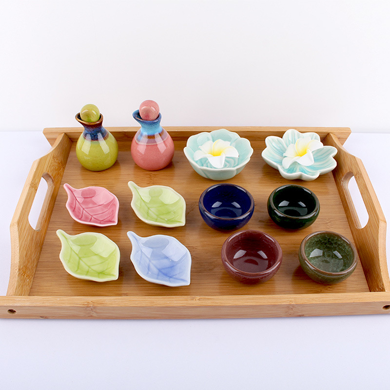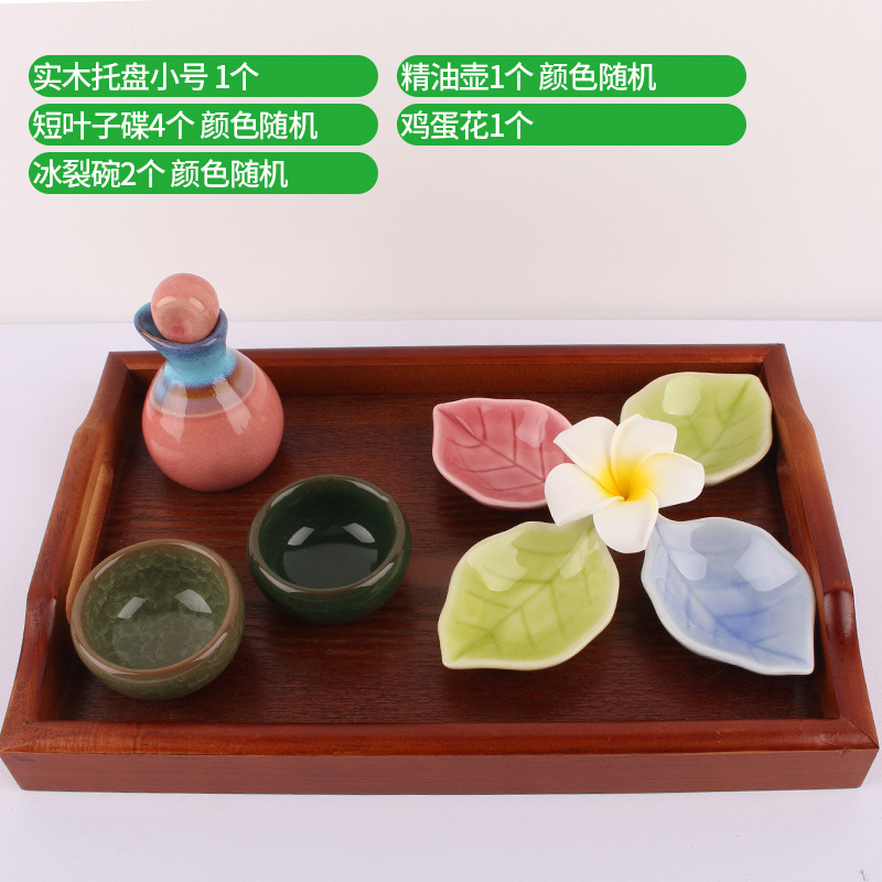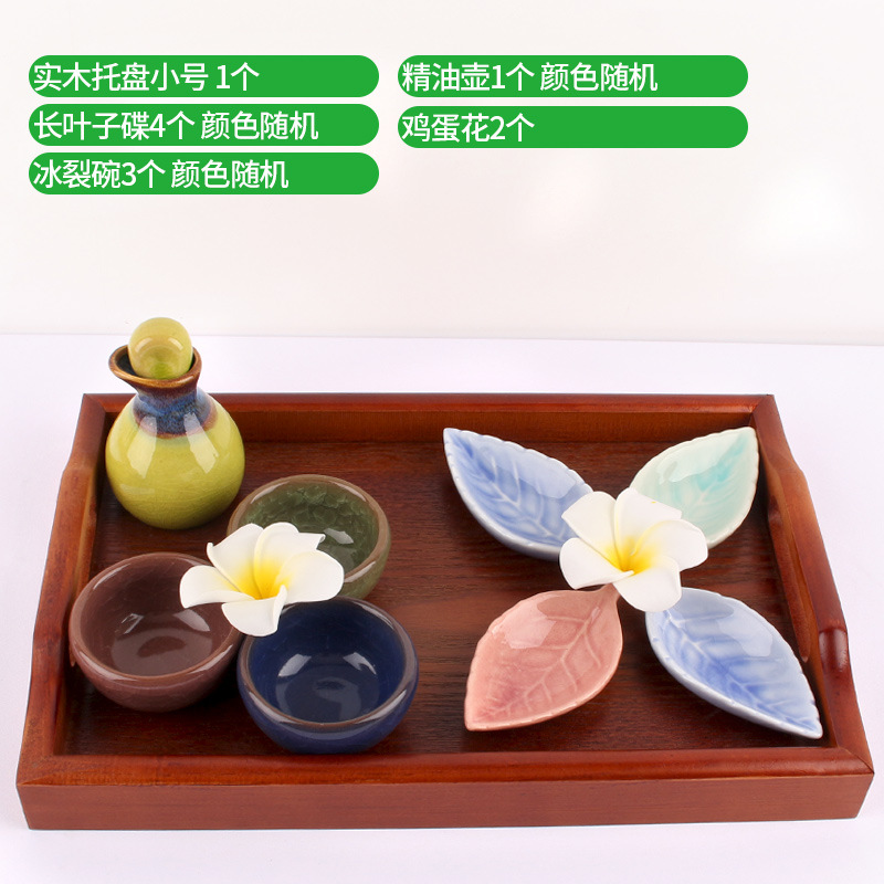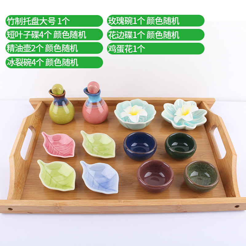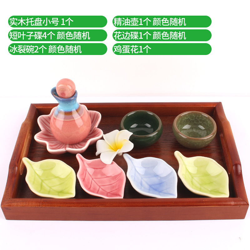 美容院用品SPA水疗冰裂釉陶瓷碟精油壶小精油碗调配瓶竹托盘套装