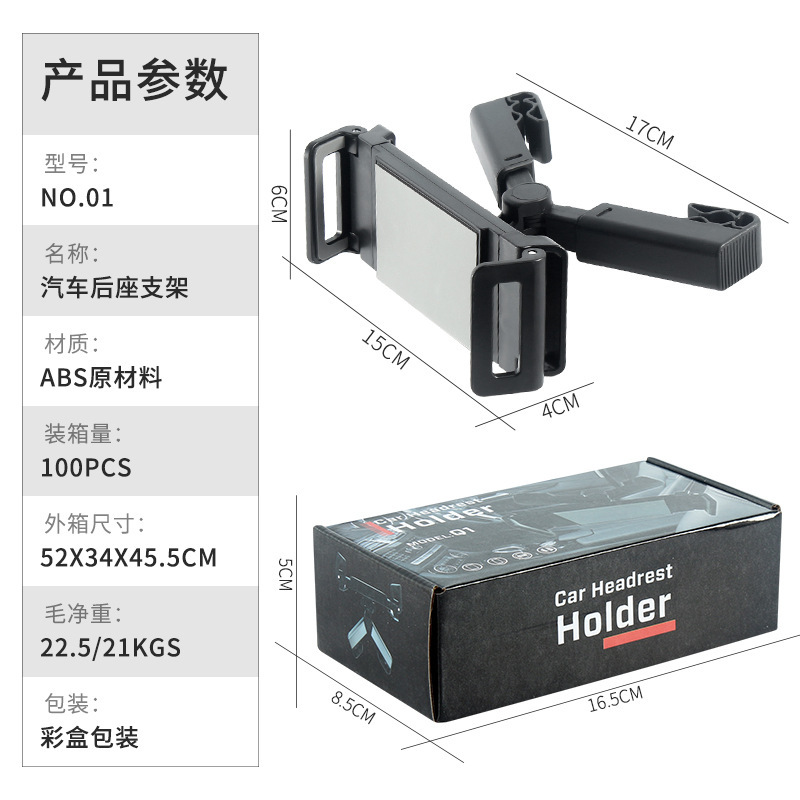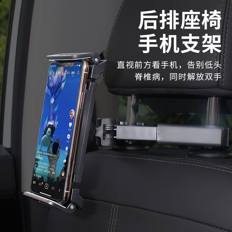 爆款多功能车载后座头枕手机支架 360°旋转伸缩后排平板电脑架