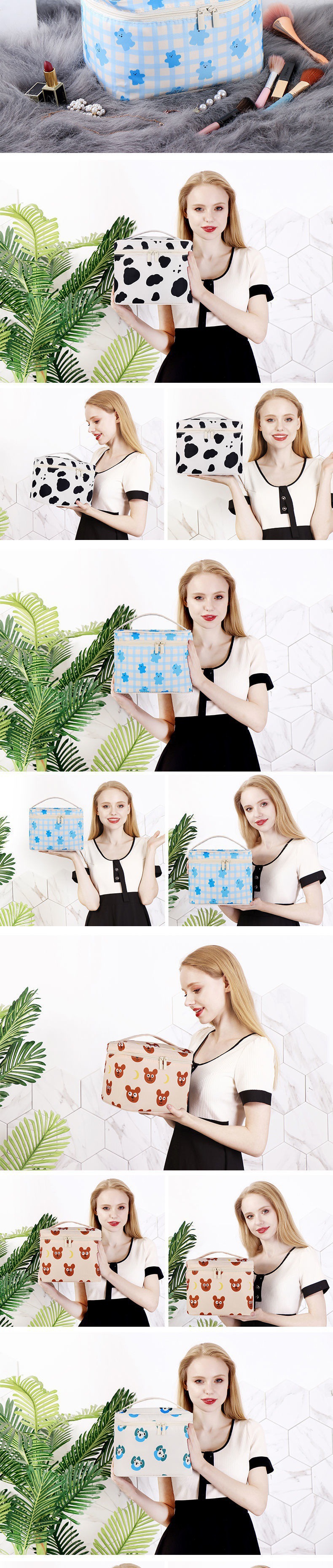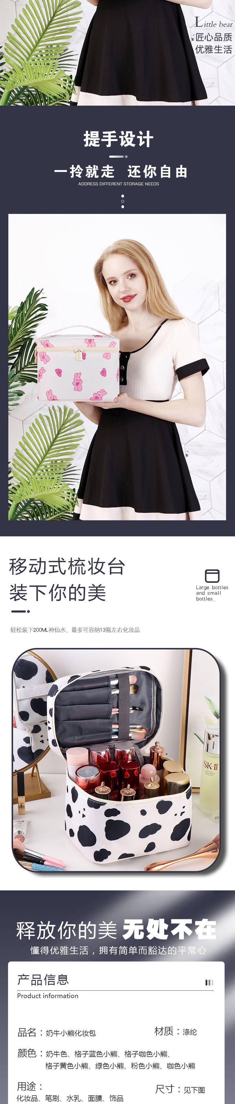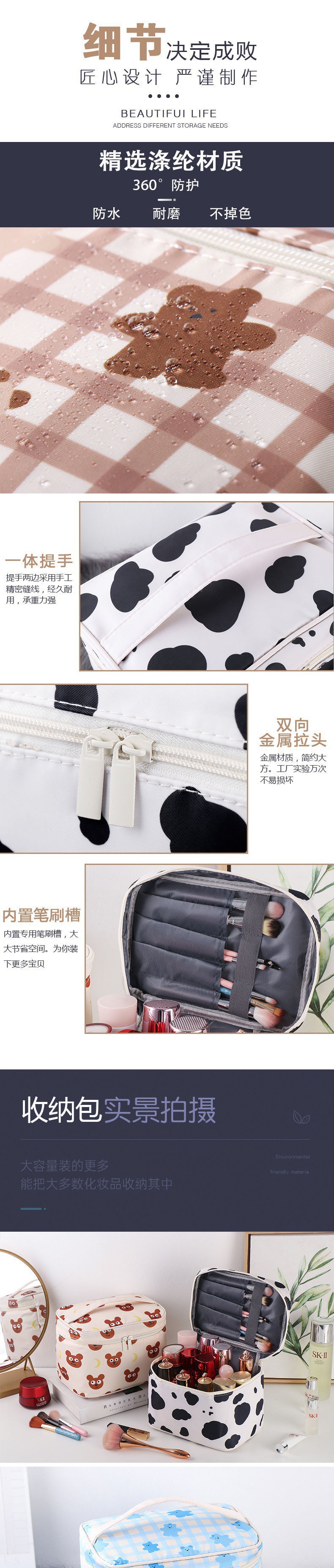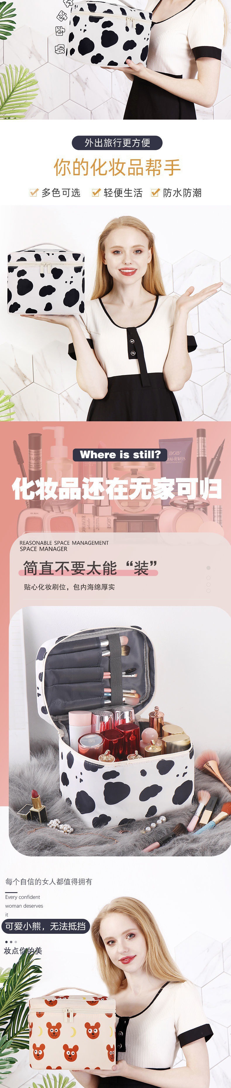 厂家直销奶牛化妆包大容量高颜值便携简约卡通护肤品收纳袋洗漱包
