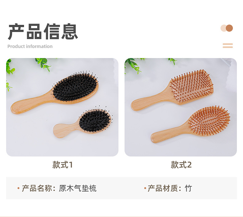 厂家批发楠竹直顺气垫梳头皮按摩气囊木梳居家日用顺发直发大梳子