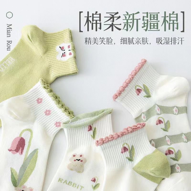 新品袜子女精梳棉女袜短袜小清新短筒袜春夏船袜ins清新厂家批发
