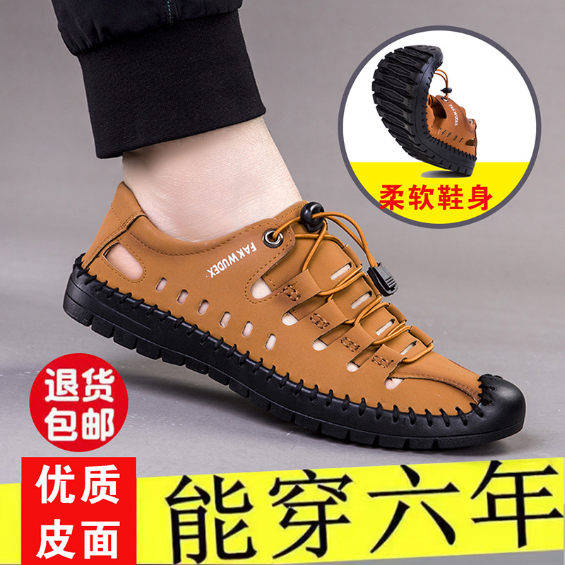 新款男士凉鞋夏季镂空凉皮鞋包头洞洞鞋软底沙滩鞋休闲男款鞋子