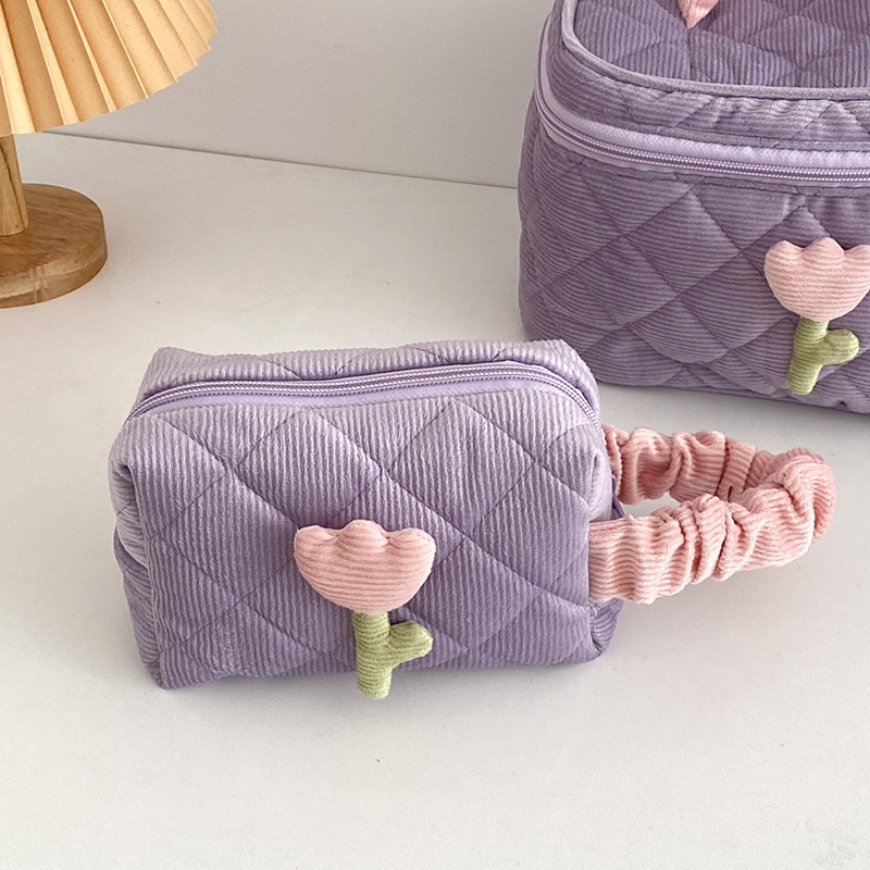 手提化妆包 大容量高颜值新款旅行便携灯芯绒可爱化妆收纳包ins风