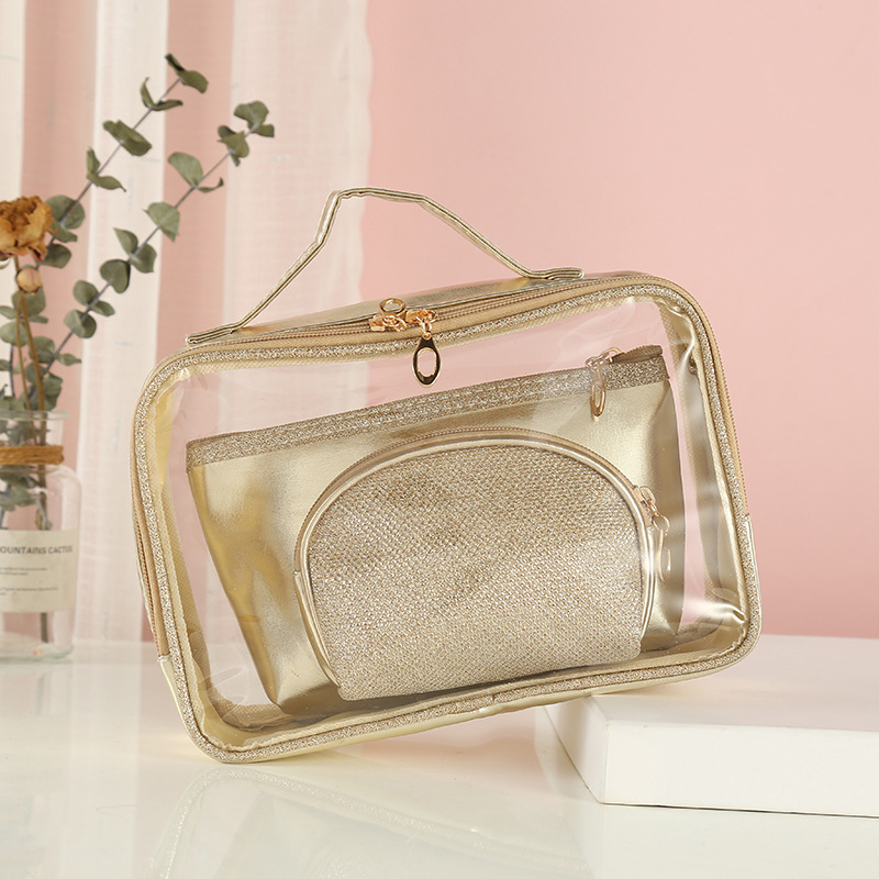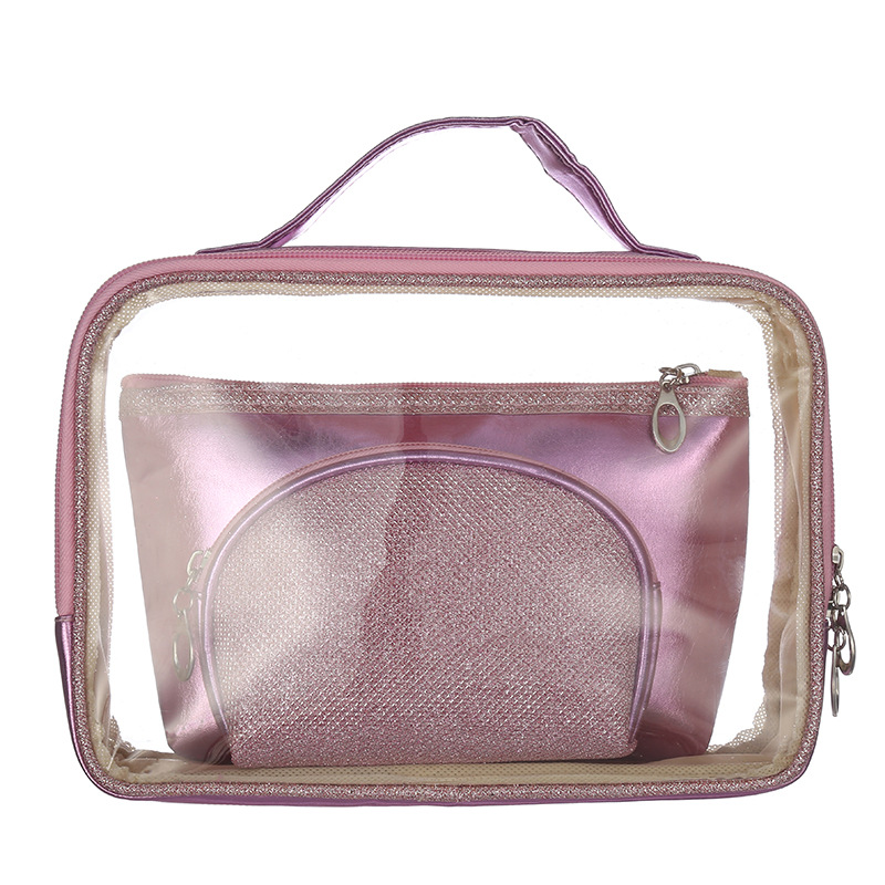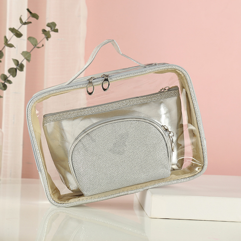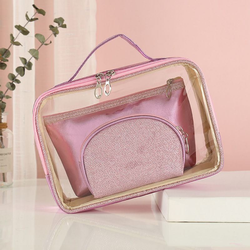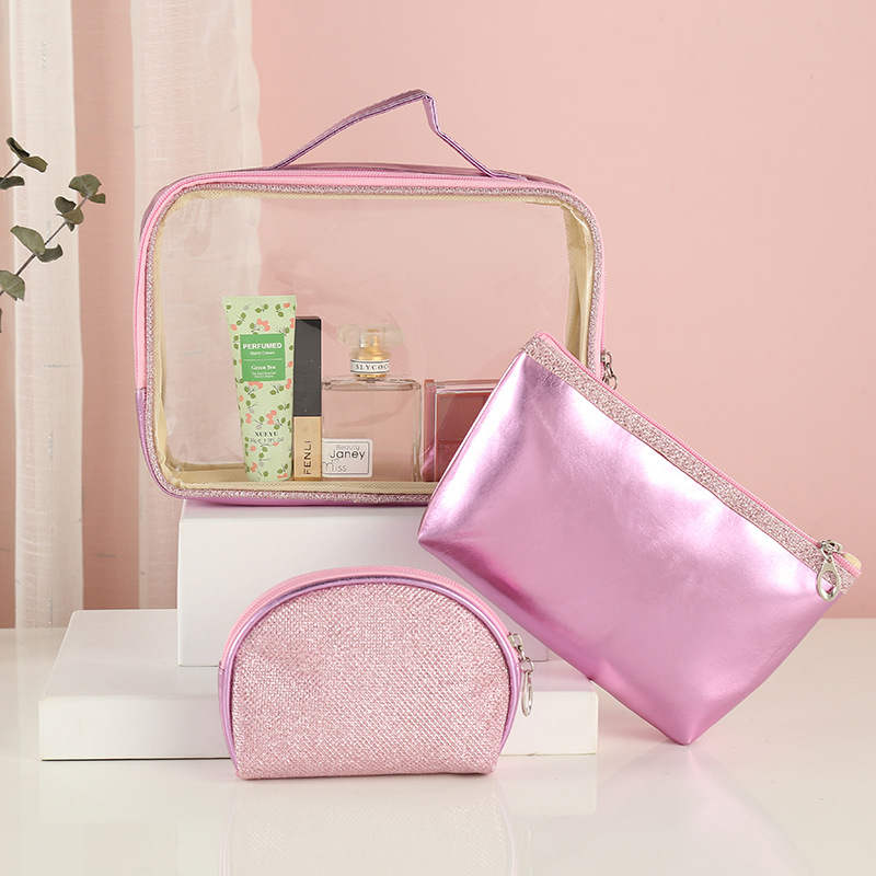 可印LOGO纯色化妆包多功能透明箱型洗漱收纳包三件套来图来样定制