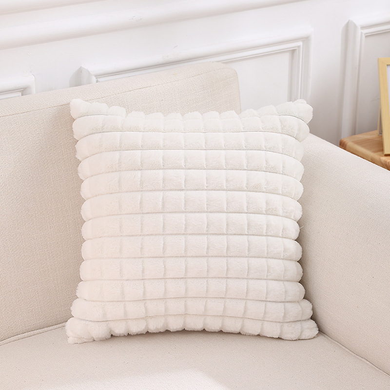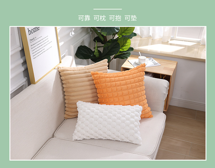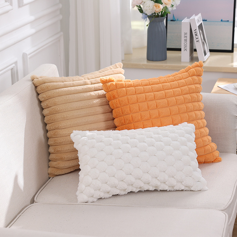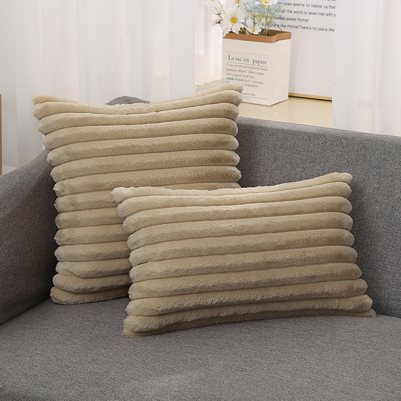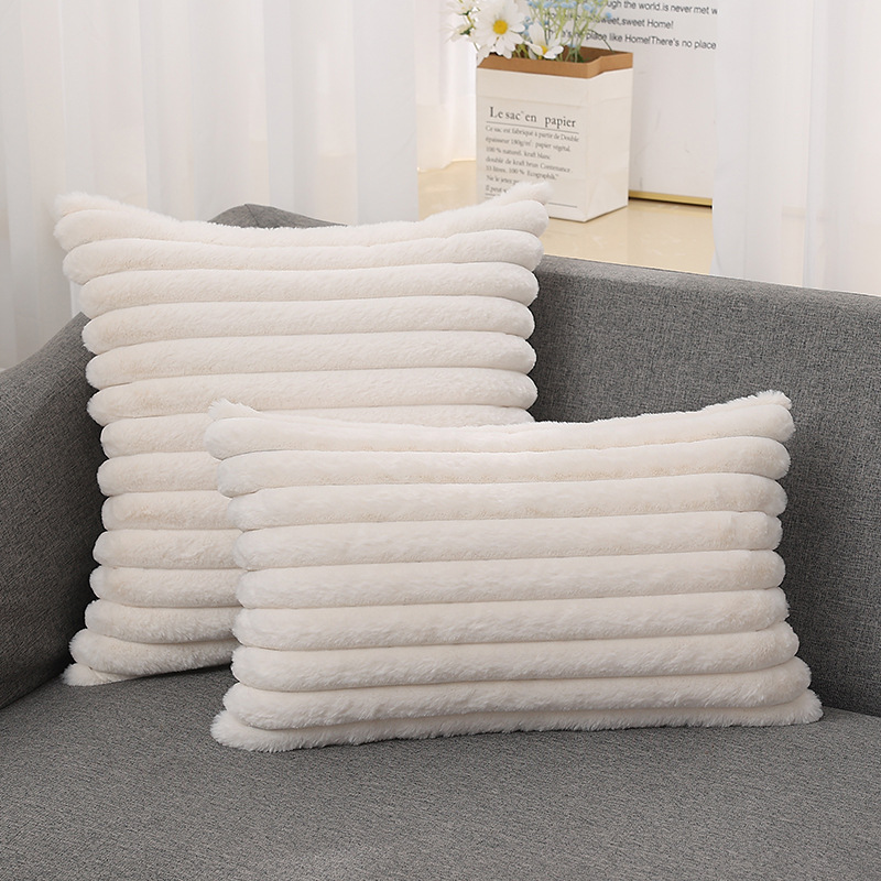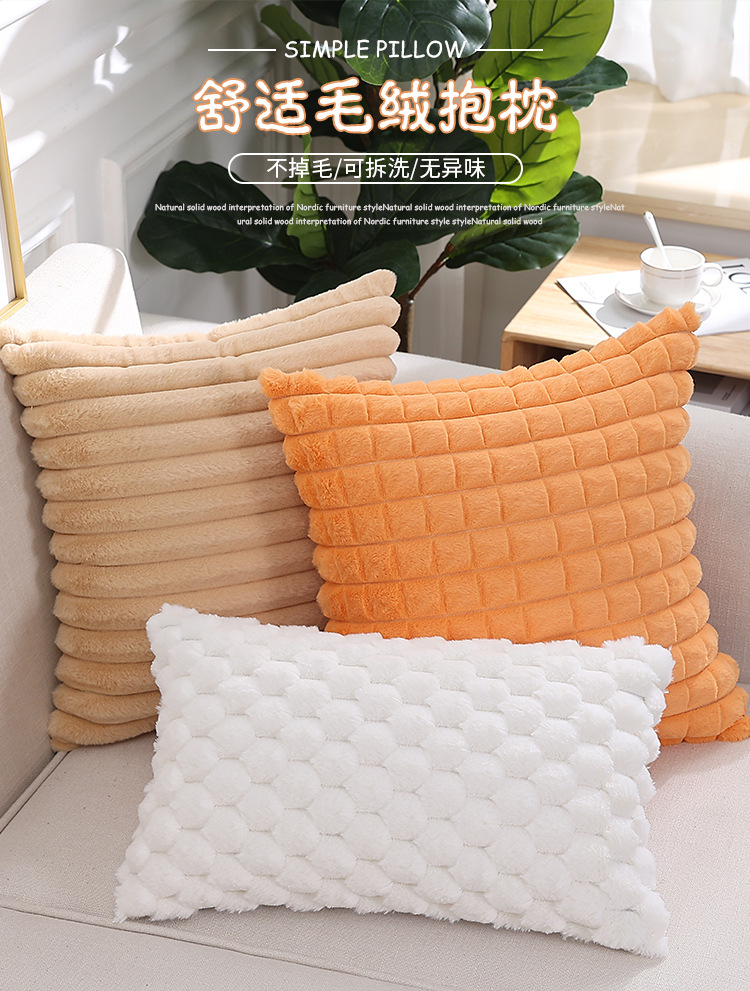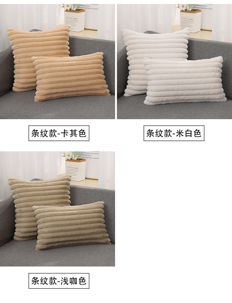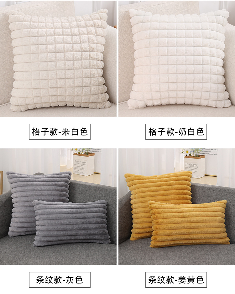 跨境热销纯色条纹抱枕客厅沙发靠枕床头格子腰枕兔毛绒抱枕套批发