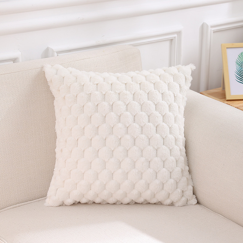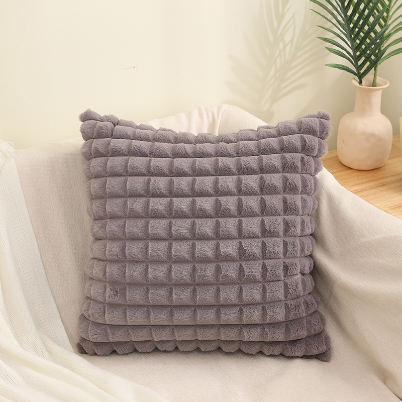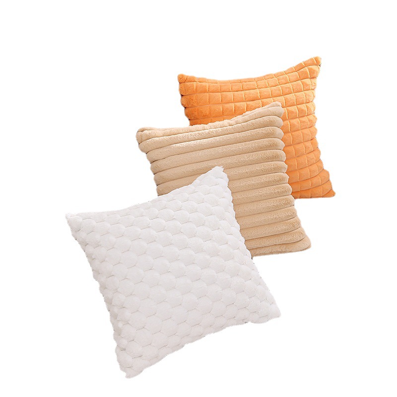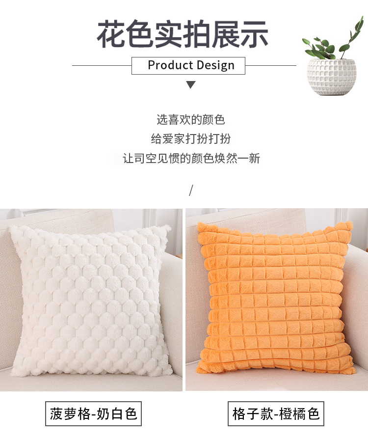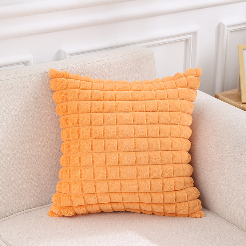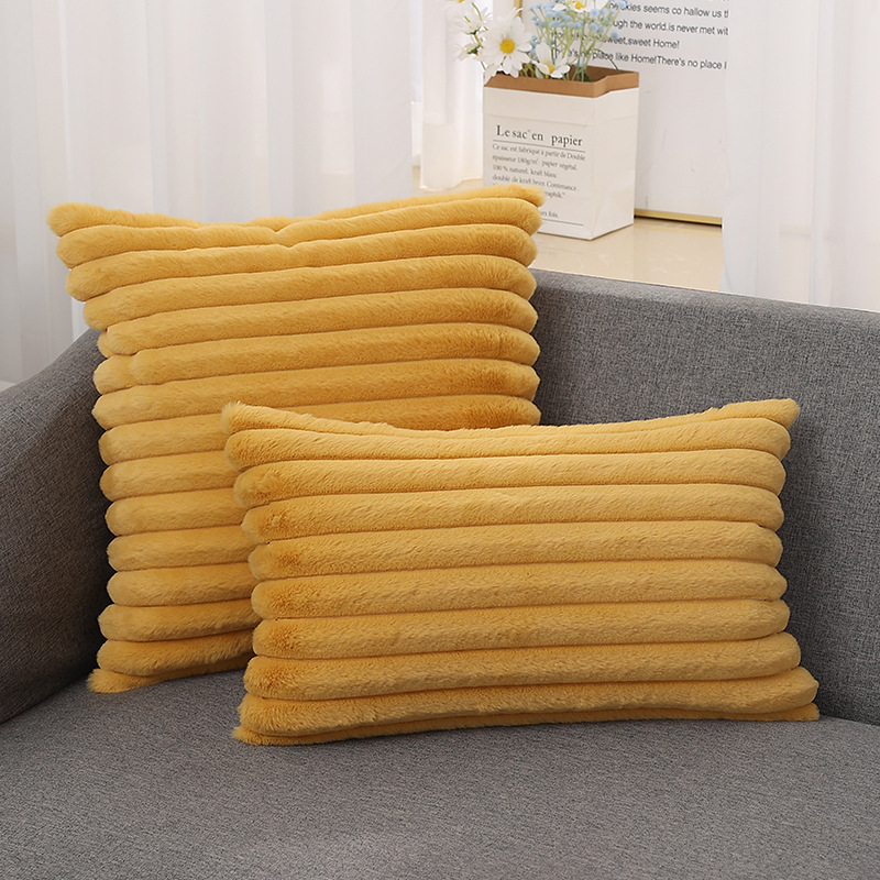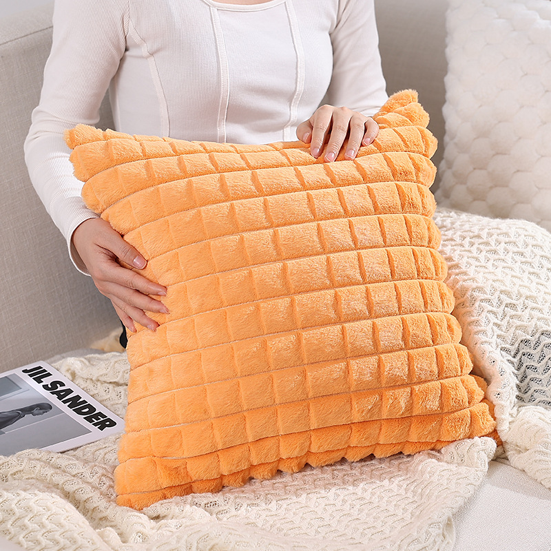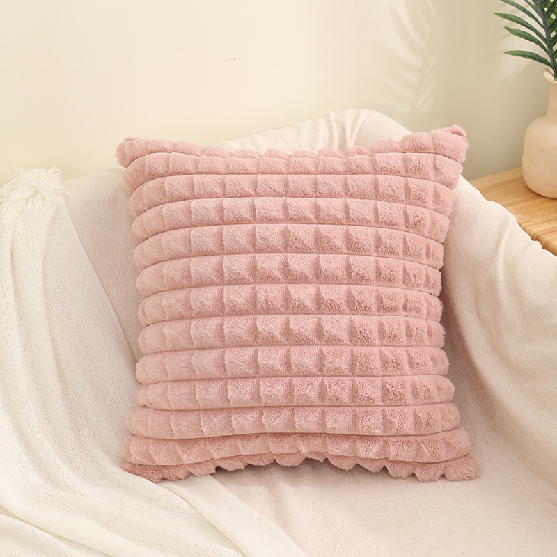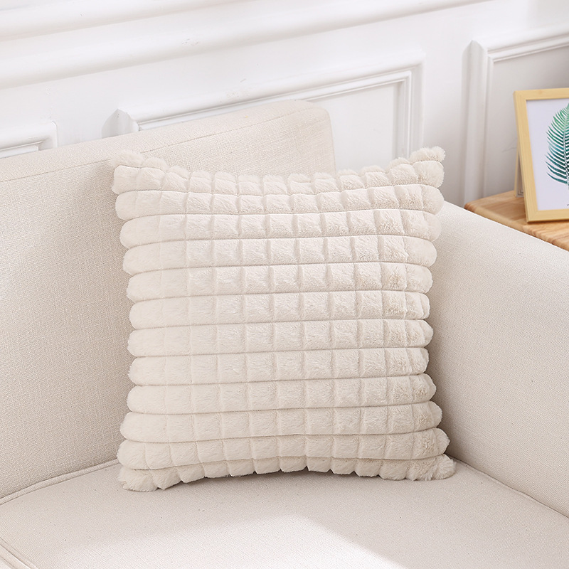 跨境热销纯色条纹抱枕客厅沙发靠枕床头格子腰枕兔毛绒抱枕套批发