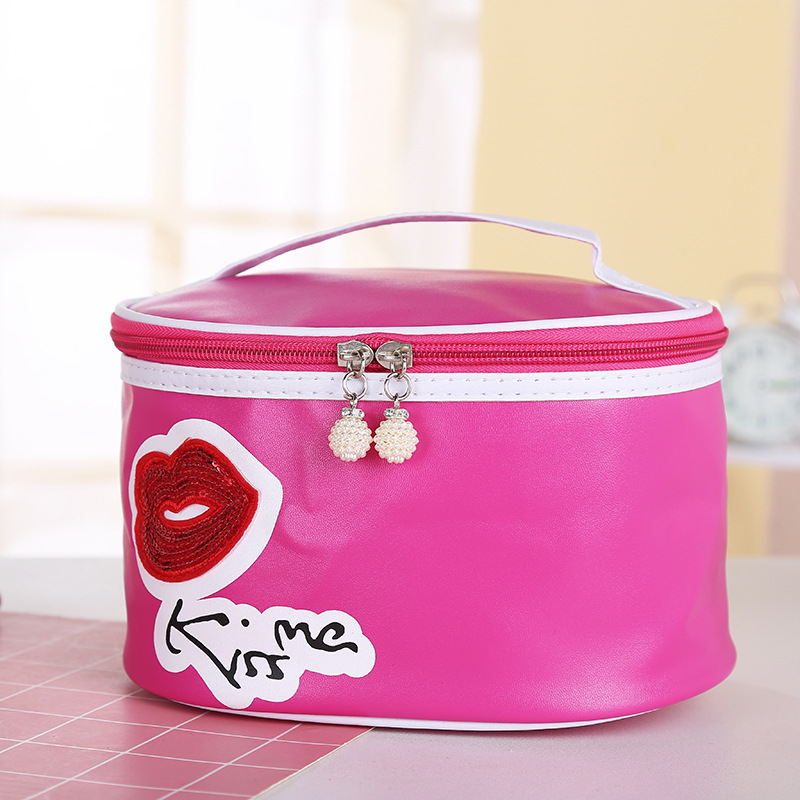 欧美风新款化妆包亮片PU羊皮纹 旅行便携收纳包大容量手提洗漱包