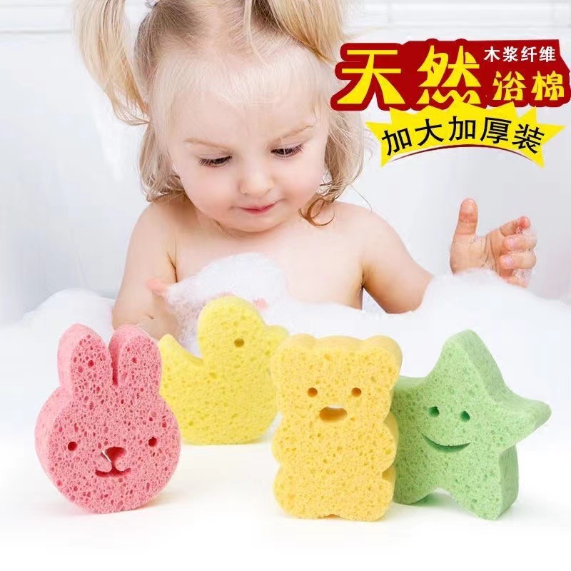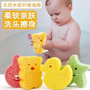 婴儿洗澡沐浴棉木浆海绵儿童卡通搓澡巾洗澡棉品浴擦 木浆