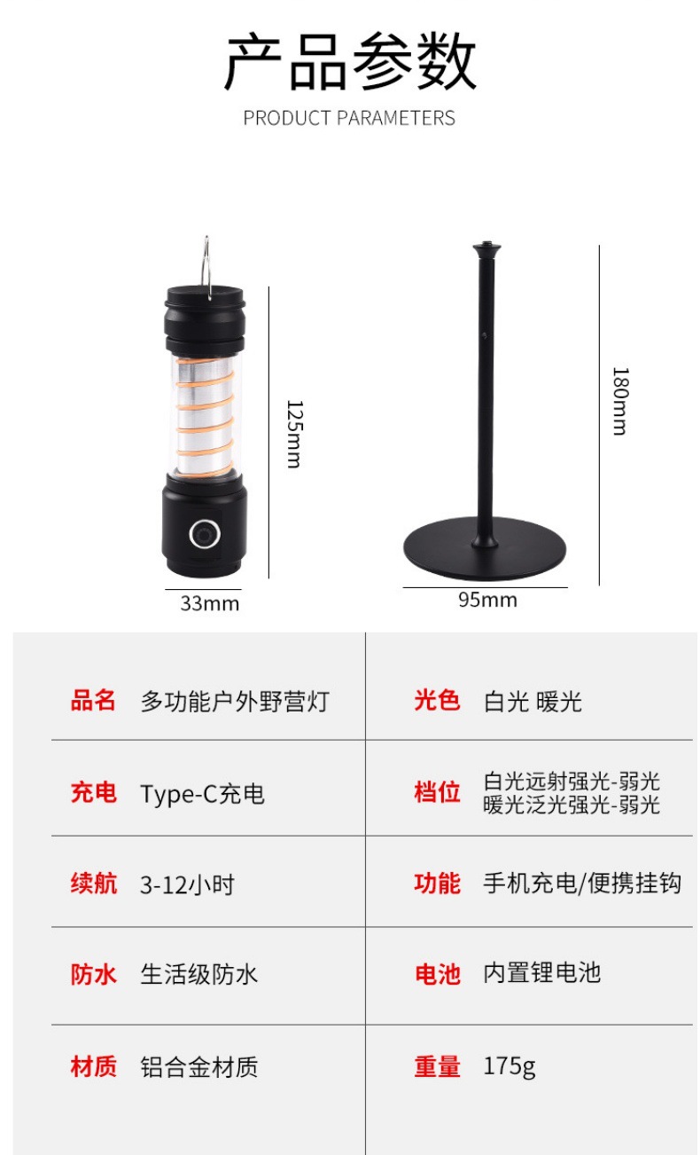 新款户外灯塔露营灯 户外照明营地氛围灯便携应急手电筒