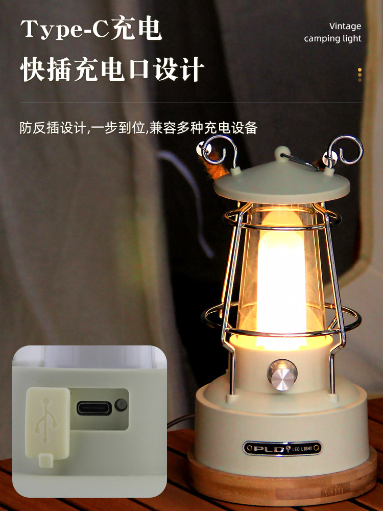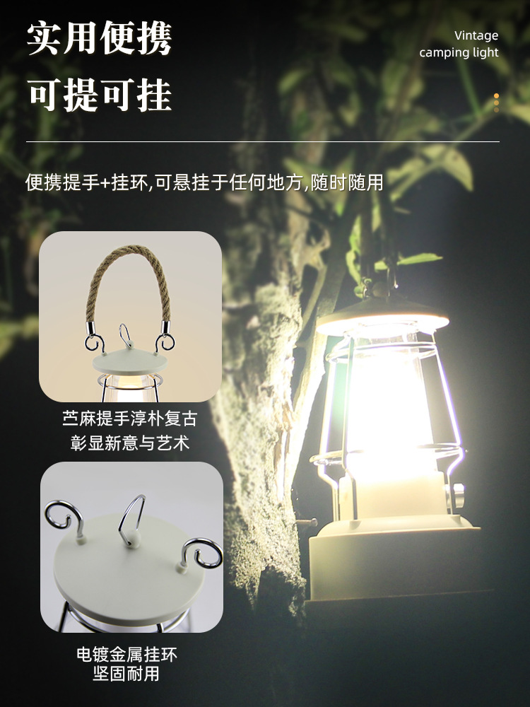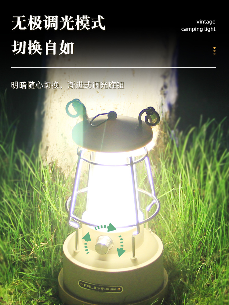跨境新款多功能复古野营灯露营灯氛围无极调光马灯充电两用