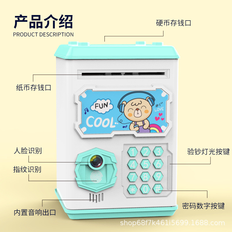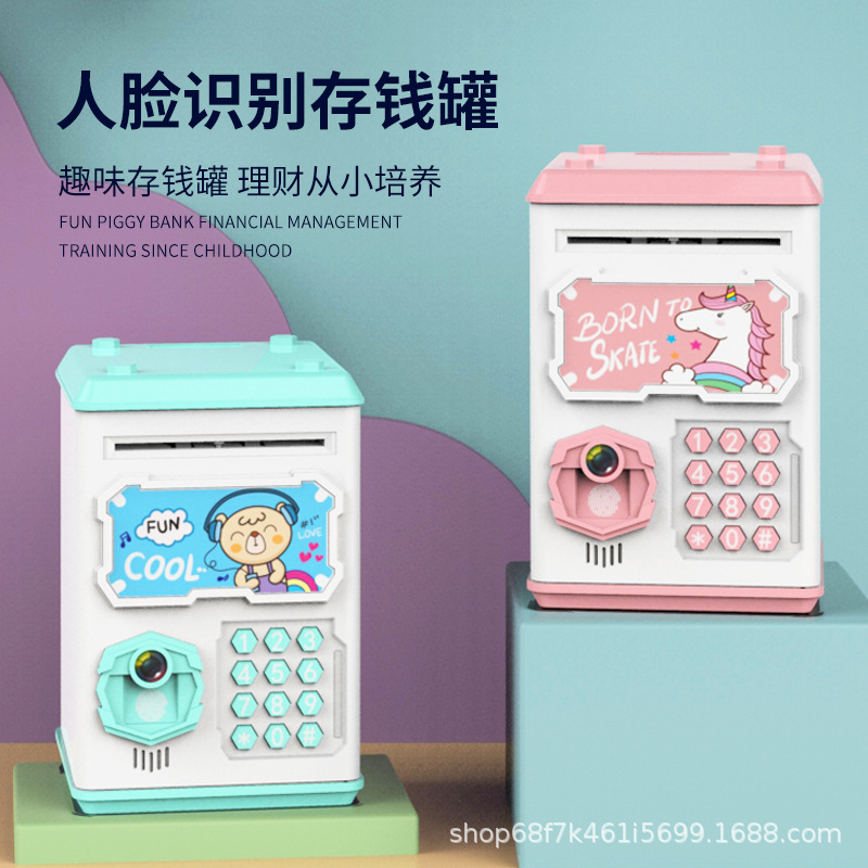 人脸识别指纹ATM存钱罐 电池密码自动卷钱卡通储蓄罐创意礼品玩具