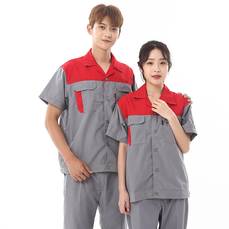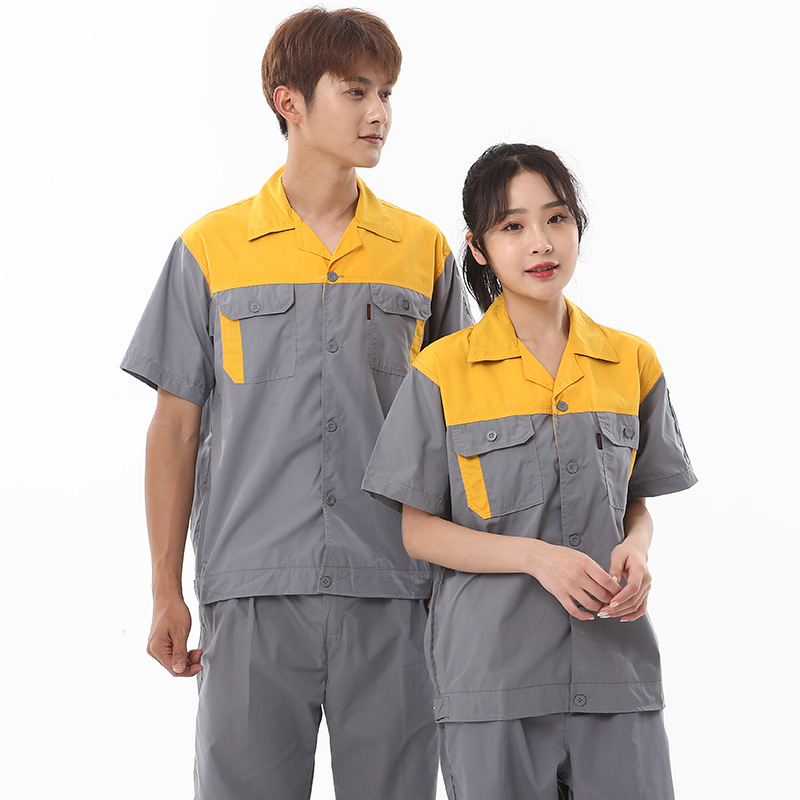 2023短袖工厂车间工作服耐磨汽修涤棉厂家直供批发劳保服印制logo