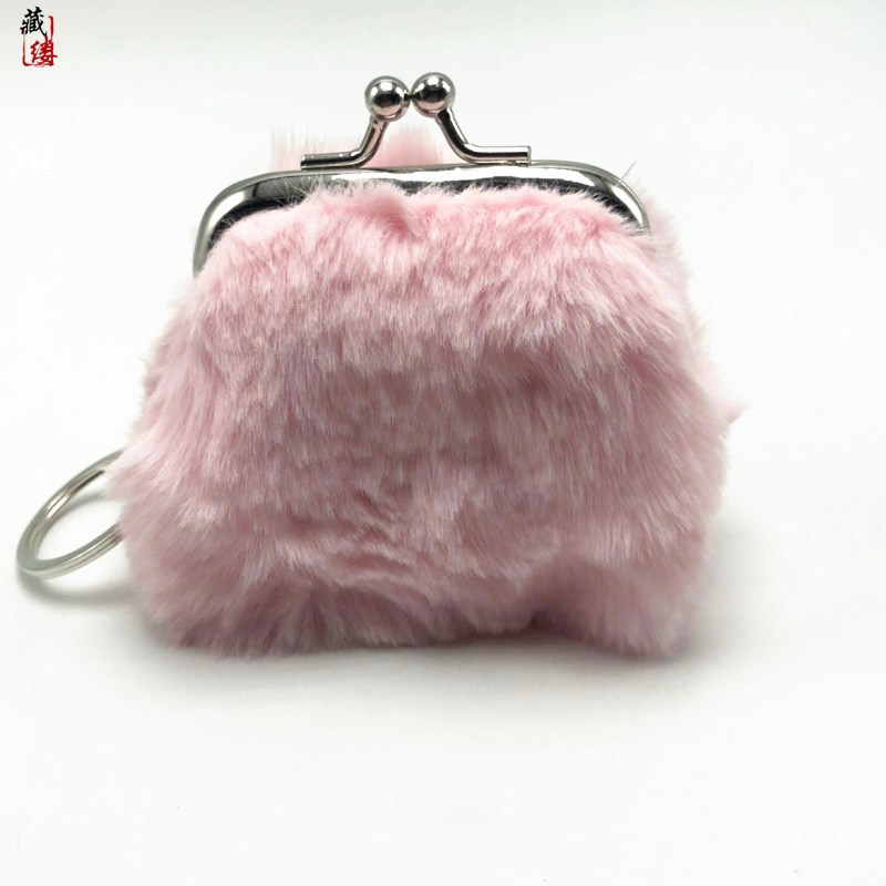 2023新款毛绒儿童迷你零钱包毛毛球钥匙圈饰品配饰特色锁扣硬币包